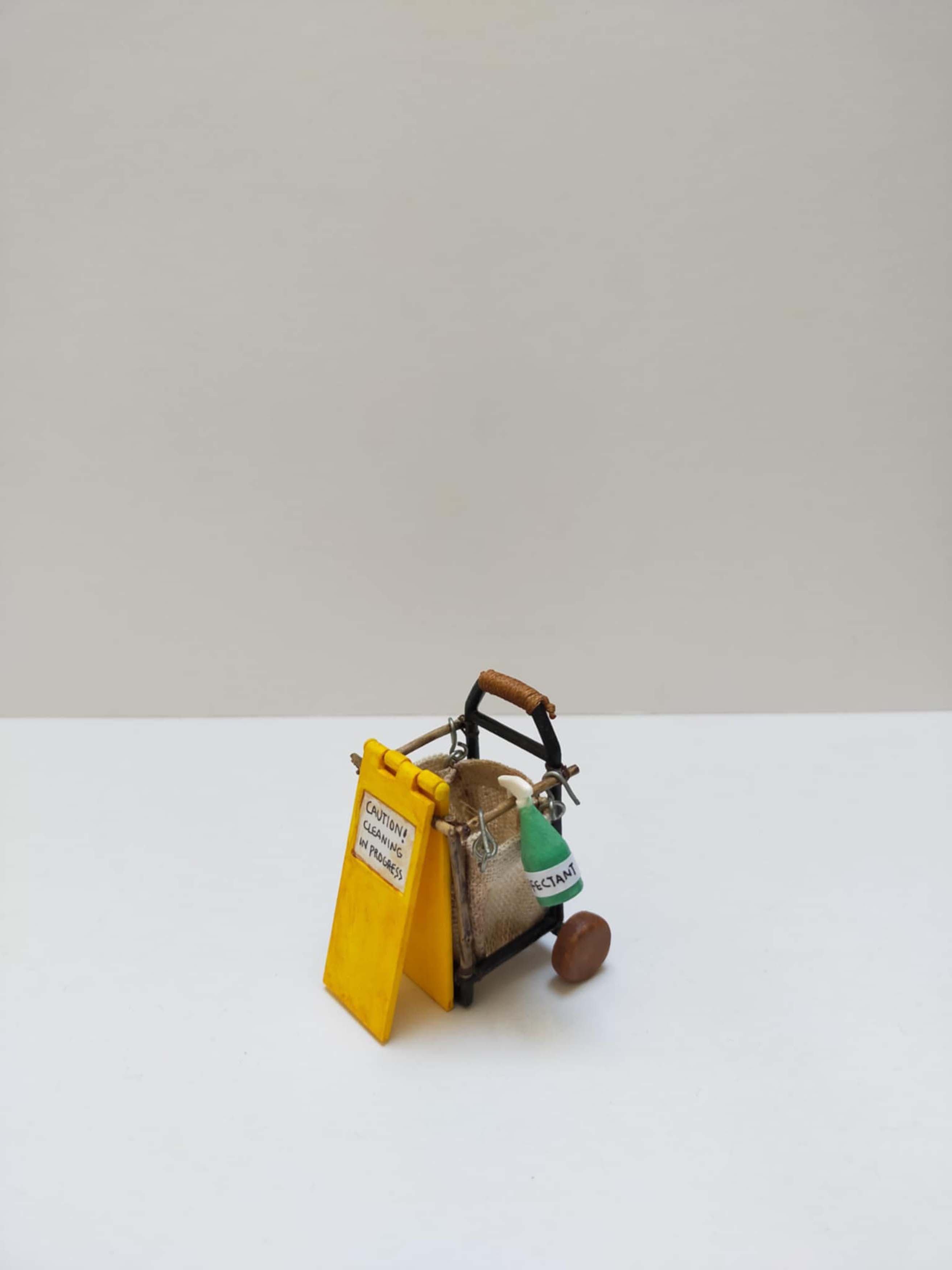 Scrubb's janitor trolley and cleaning equipment. 3D print and physical craft.