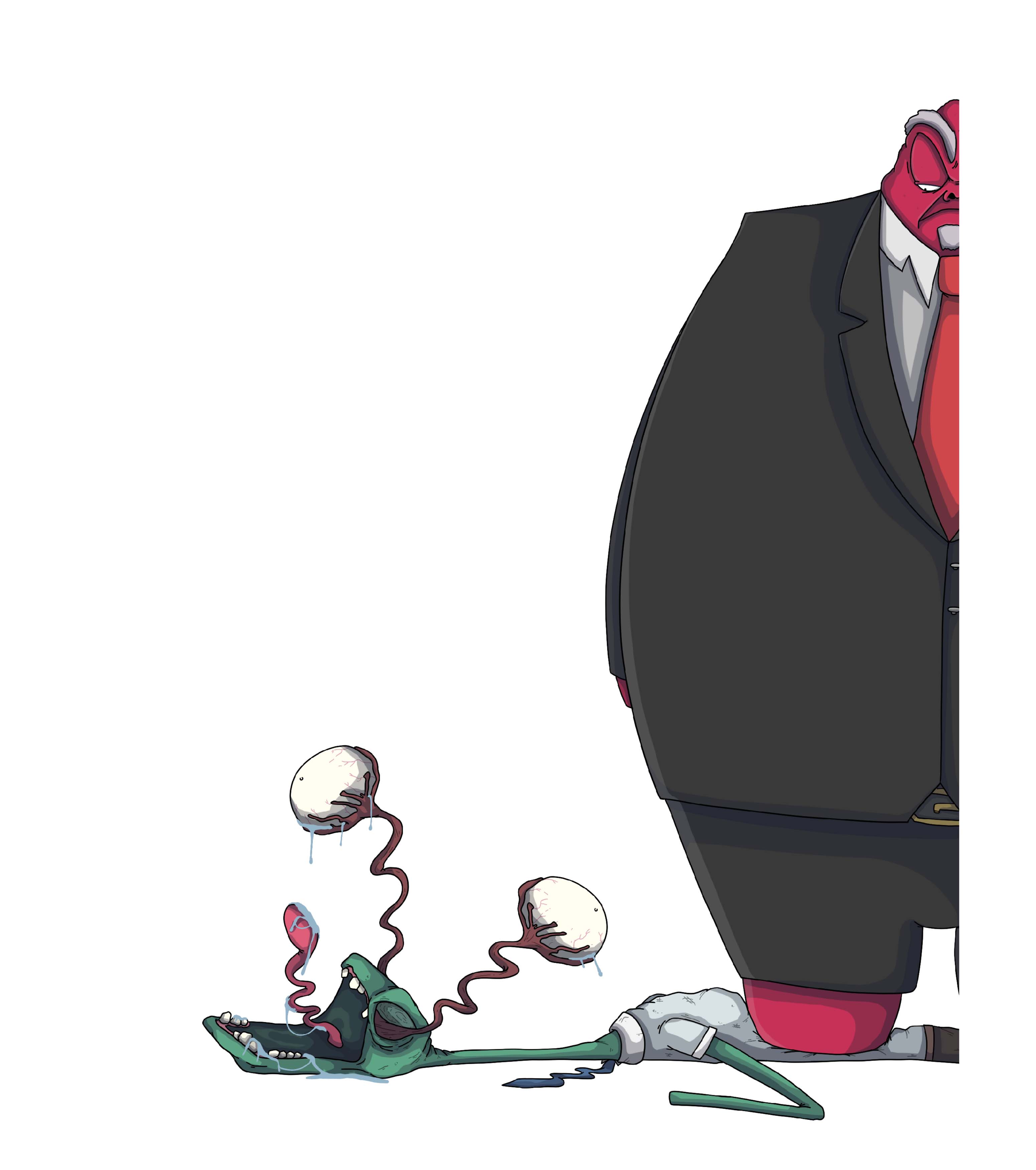 This is an illustration of a powerful Magnates member, standing on the neck of a Gremlin, as a metaphor for power struggles.