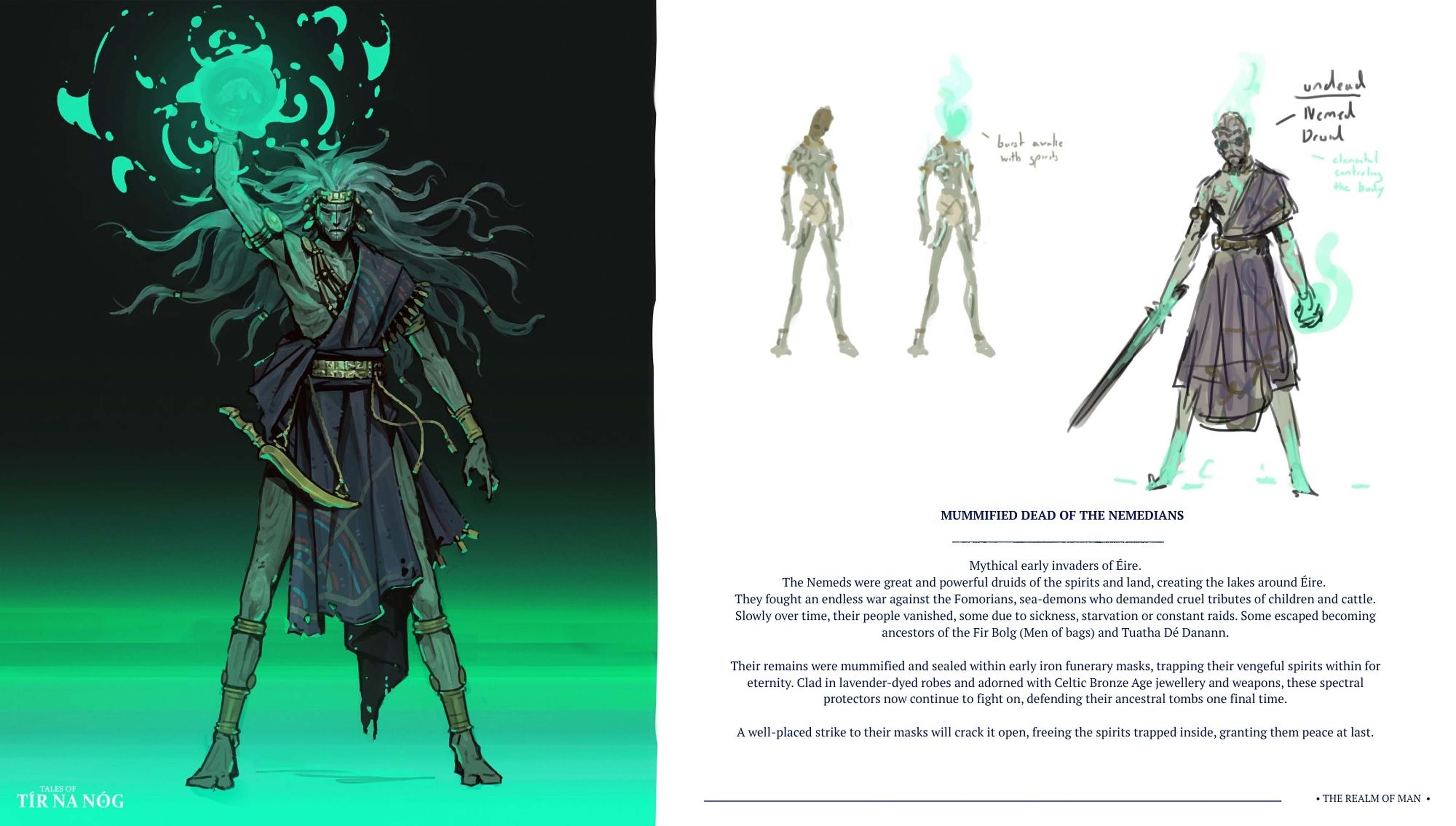 Tales of Tír na Nóg is an art/production bible for a dungeon crawler exploration-based game. Set within the ancient burial mounds that bridge the Realm of Man above and the Sidhe (Sí) Otherworld below.