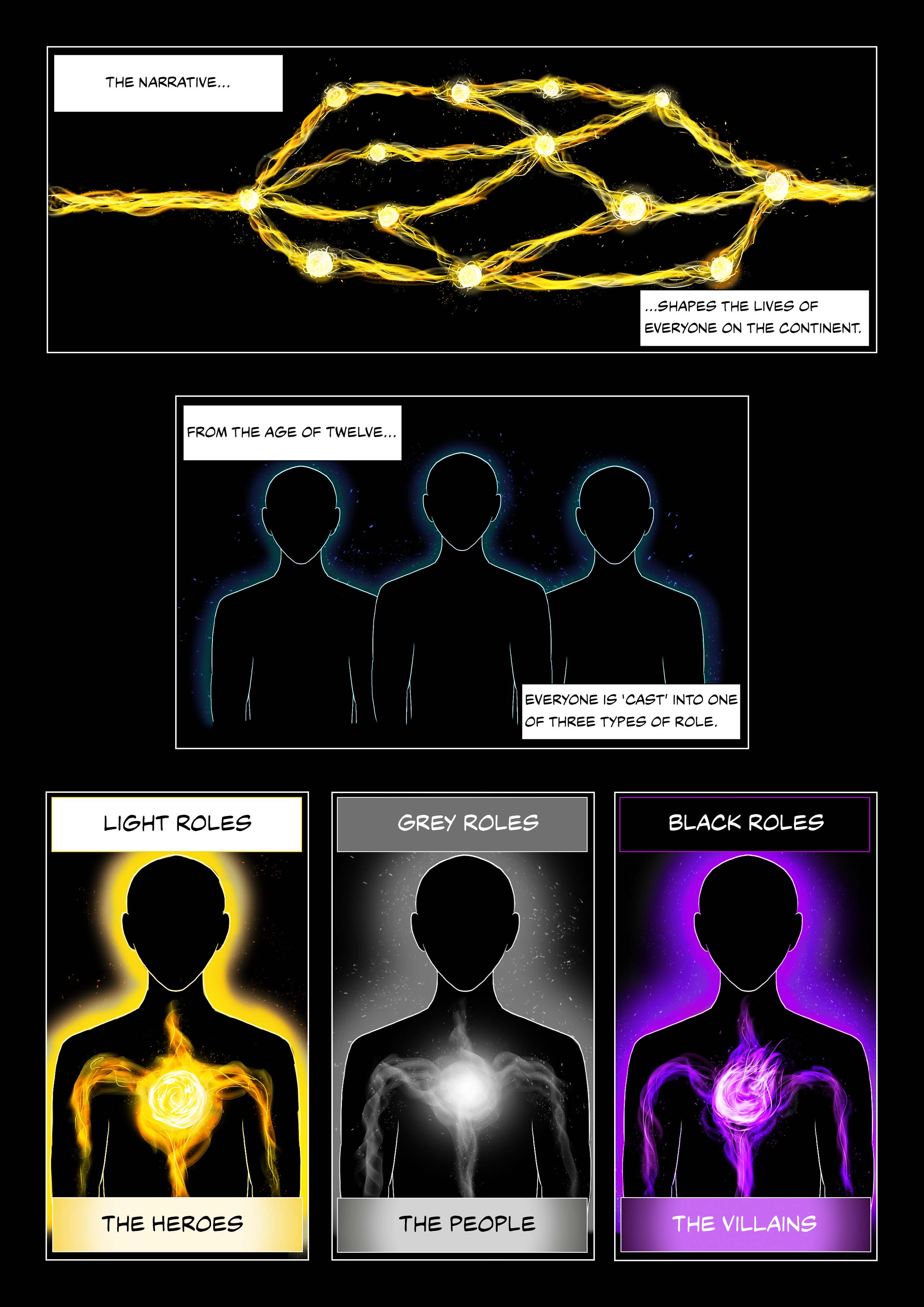 Using the concepts of 'Heroes' and 'Villains' within the narrative, Miscast seeks to explore the idea of identity, and how ones personal perception of themselves and their goals can contrast with how they and their actions are viewed by society.