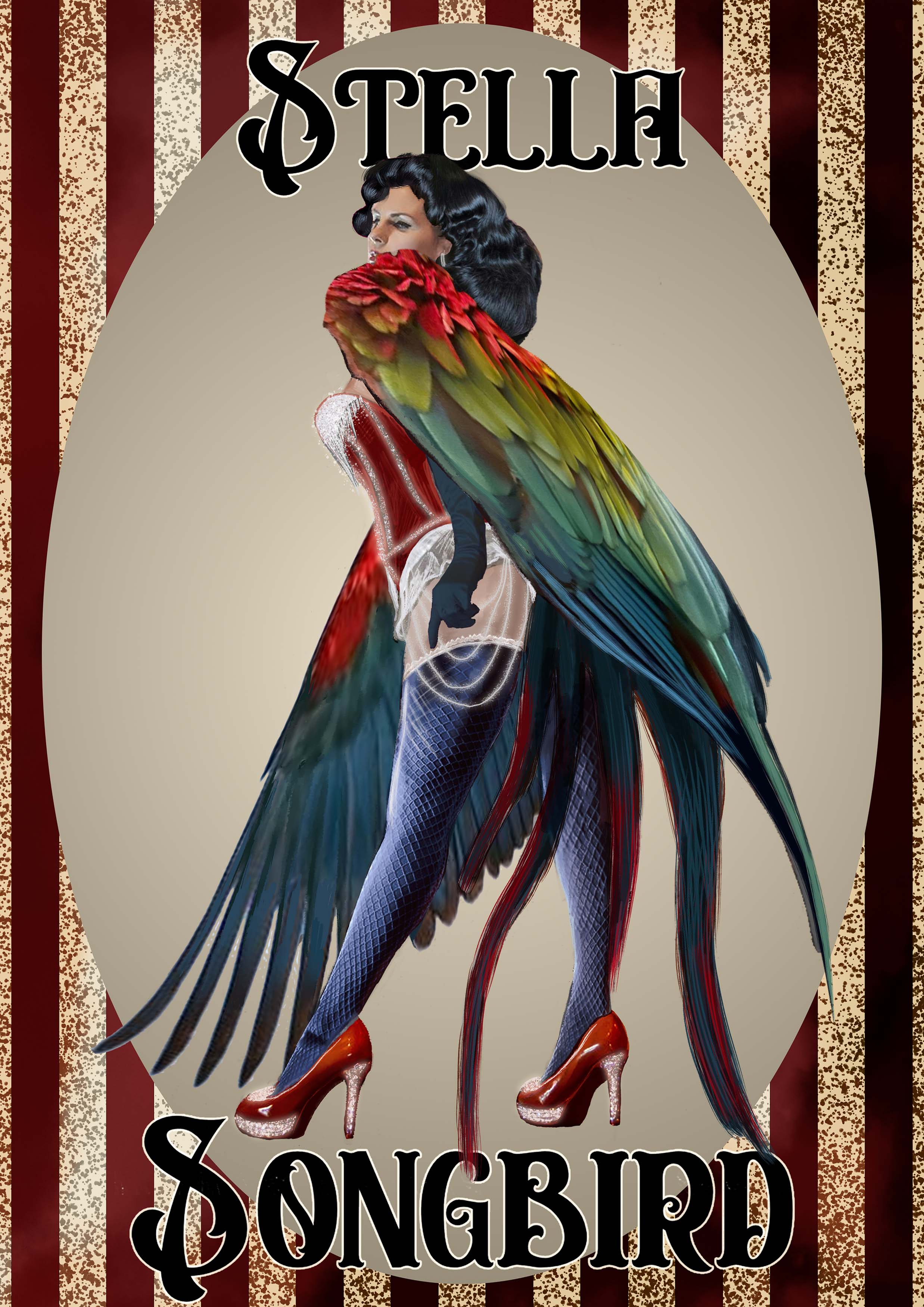 Stella the Songbird - One of the many burlesque flyers found in the Aviary
