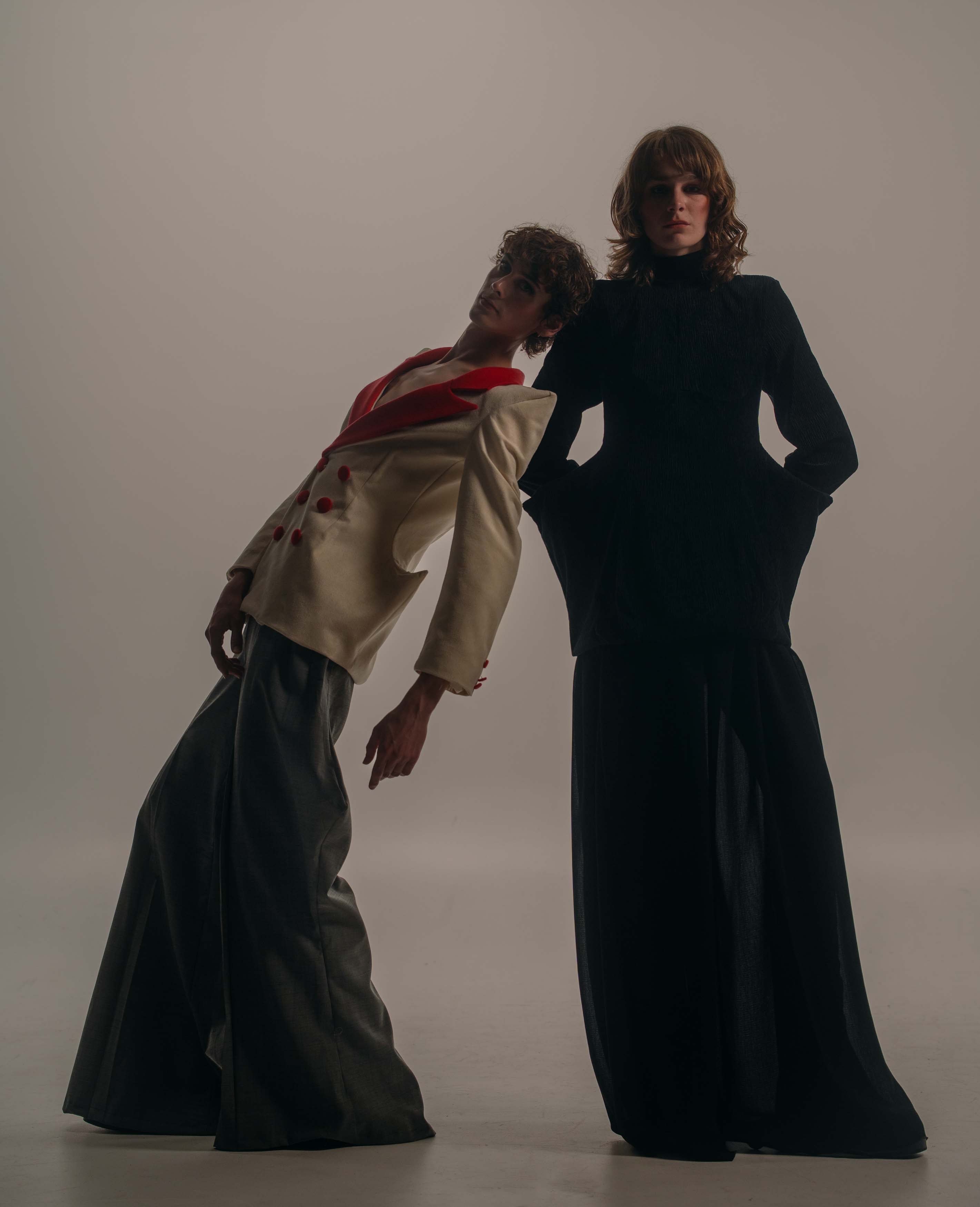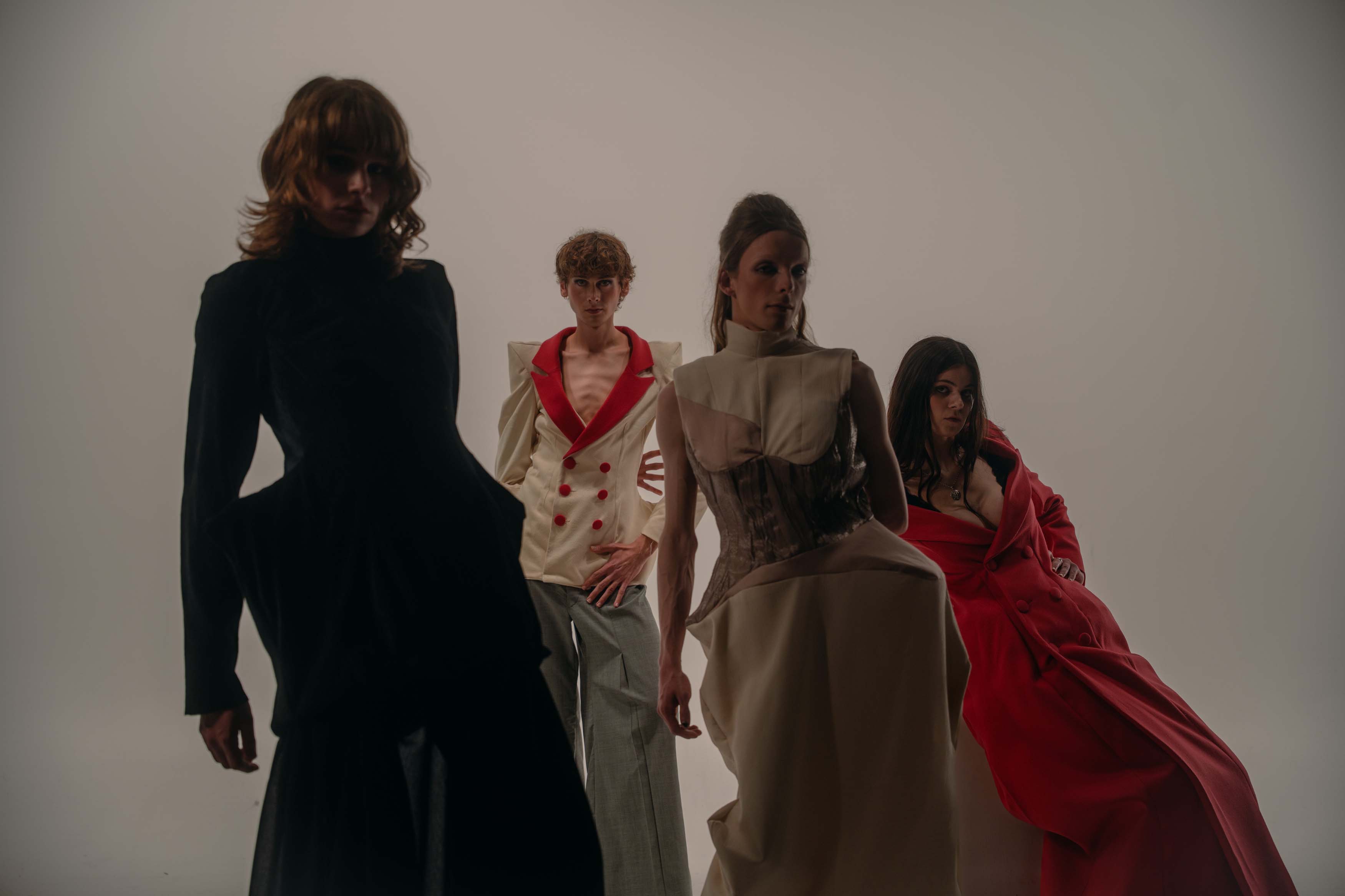 This project challenges the restrictive ideals placed on the body in fashion. I explored how silhouette and proportion shape how bodies are read, valued, and gendered. Through sculptural padding and moulage draping, I distorted the dress form to create exaggerated, ambiguous shapes that resist classical symmetry and containment. The resulting garments show the body as fluid and adaptive. The work invites reflection on why bodies are expected to remain fixed, legible, and controlled.