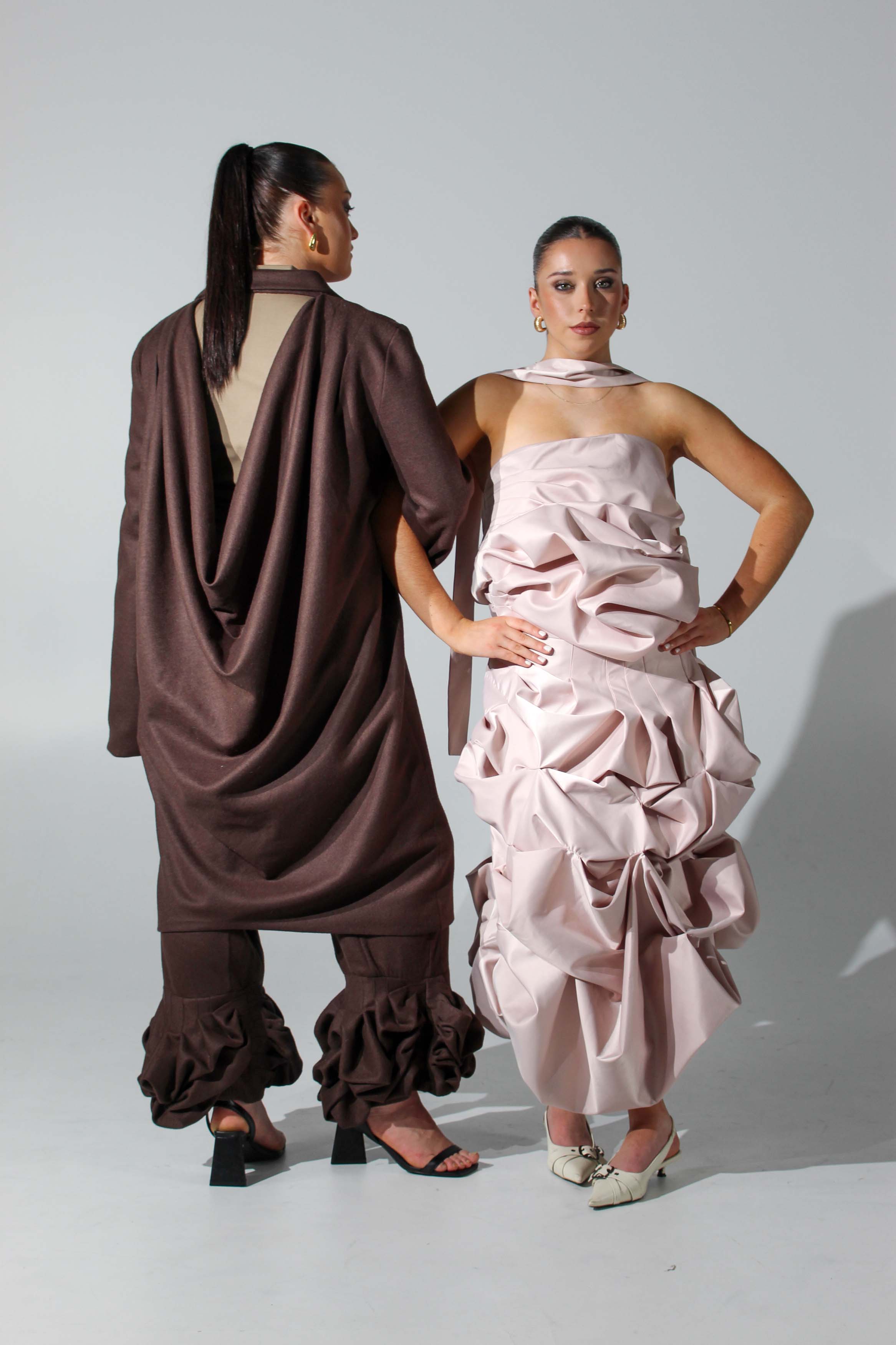 This collection explores how fashion can subvert the male gaze and ideals of hyper-visibility. It critiques how fashion has historically objectified the female body through media and digital culture. The project proposes a new form of confident dressing that centres modesty, emotion, and autonomy, creating sculptural garments that empower the wearer and redefine beauty as something felt rather than seen.