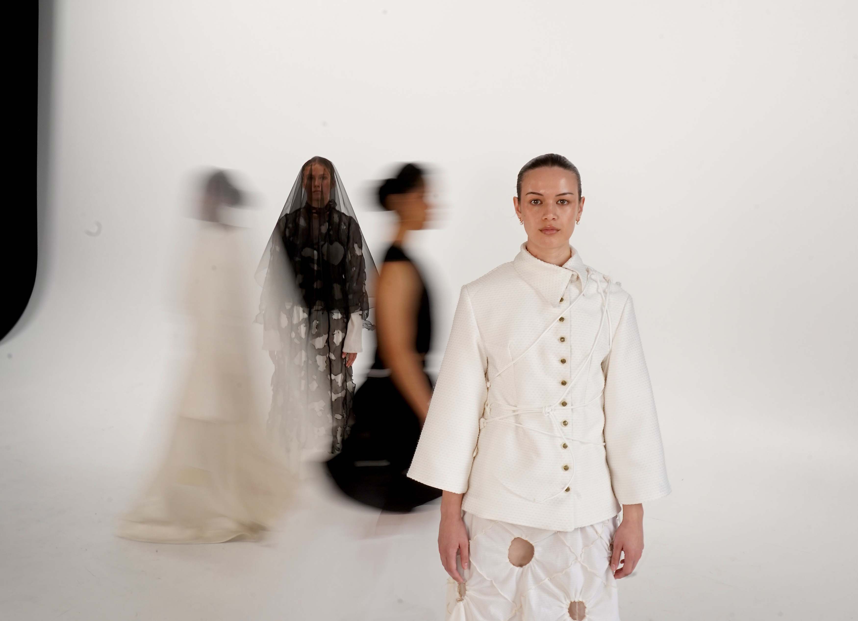 Throughout this project I worked as fashion designer, as well as producer and director of photographic/film mediums that were compiled from this collection. With past experience in textile design, I decided to focus in on textile storytelling in fashion design. As a result, the concept of "bride of christ: a return to purity" is explored through various textile manipulations