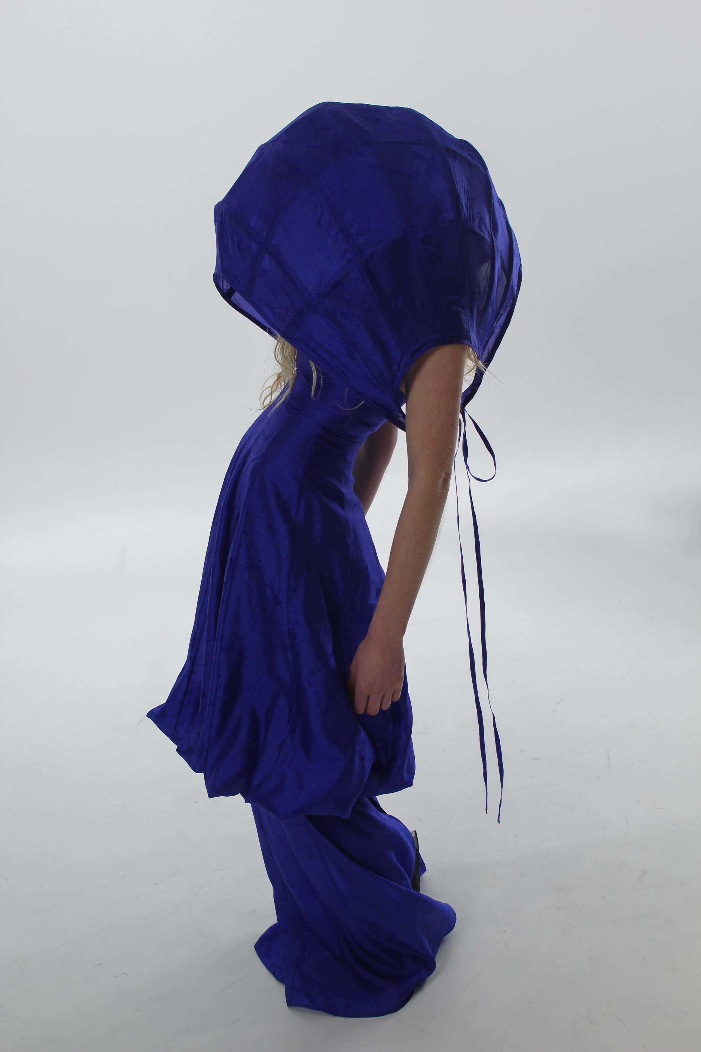 Look 01. Made from Korean Oksa silk, inspired by the softness and structure of hanbok. The over-the-head dome creates a physical and emotional space in between — a place of both belonging and distance.