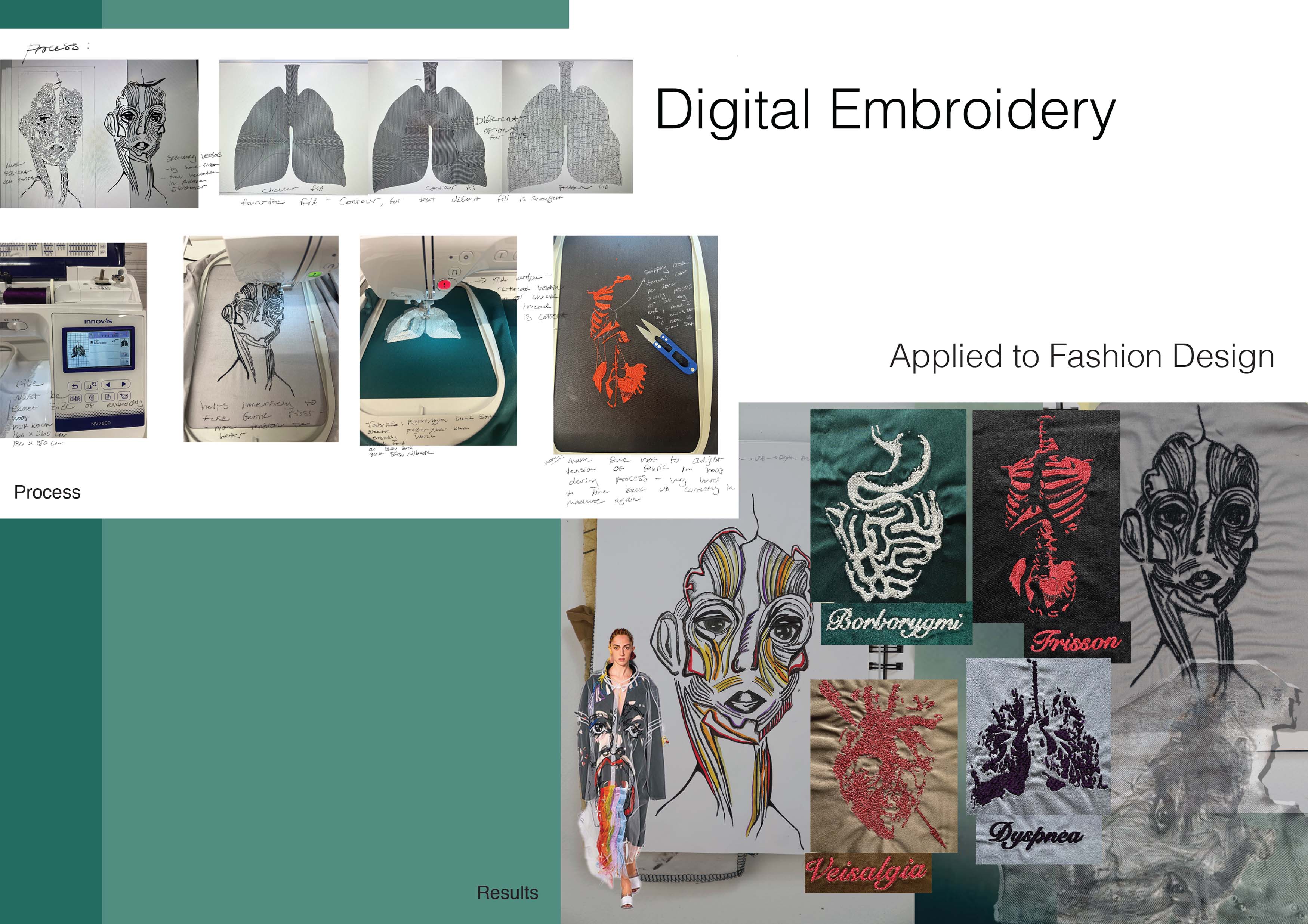 Digital Embroidery process and results. Inspired by Maison Margiela A/W and S/S 2017 Artisanal collections (S/S collaboration with artist Benjamin Shine).