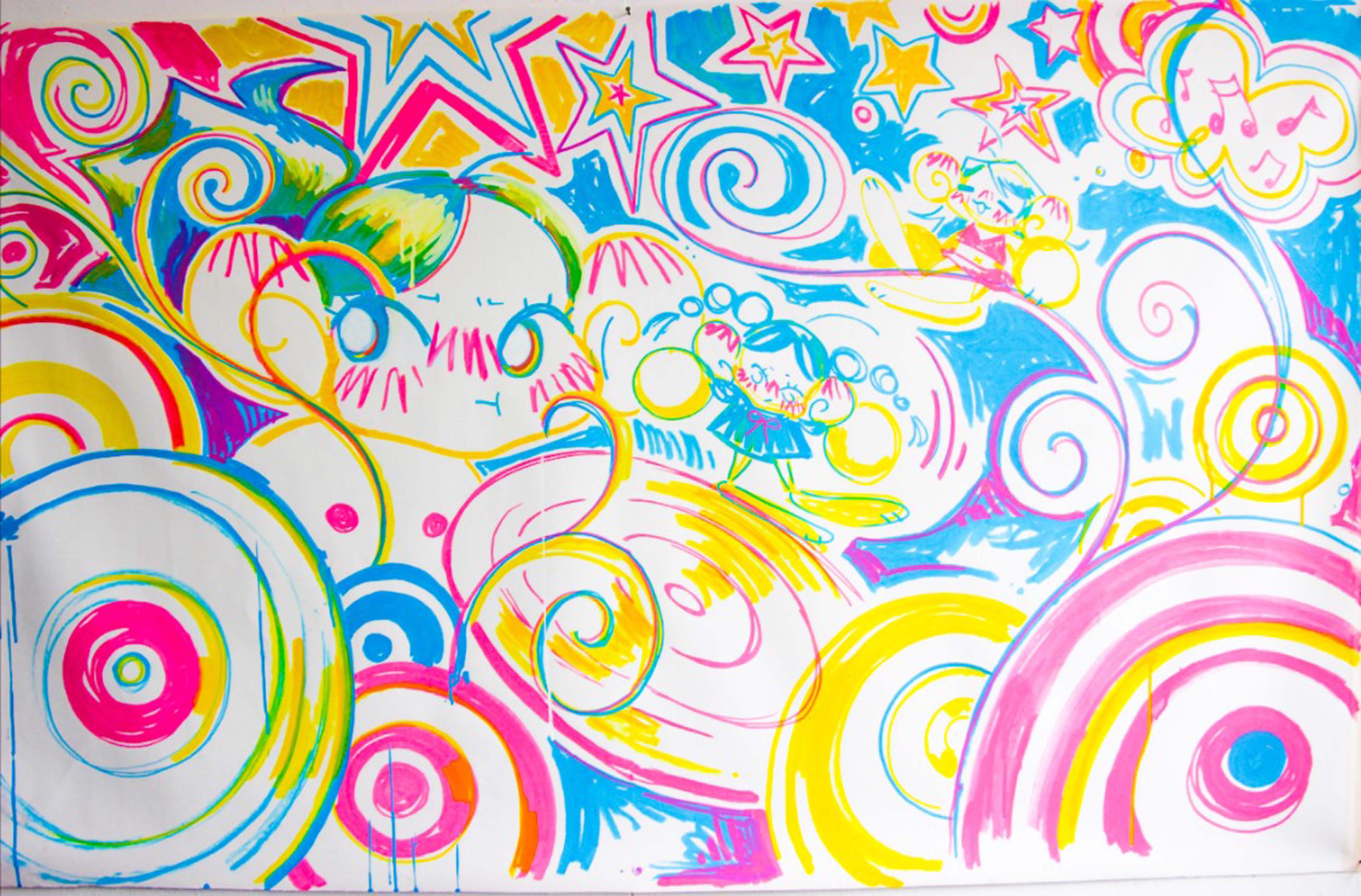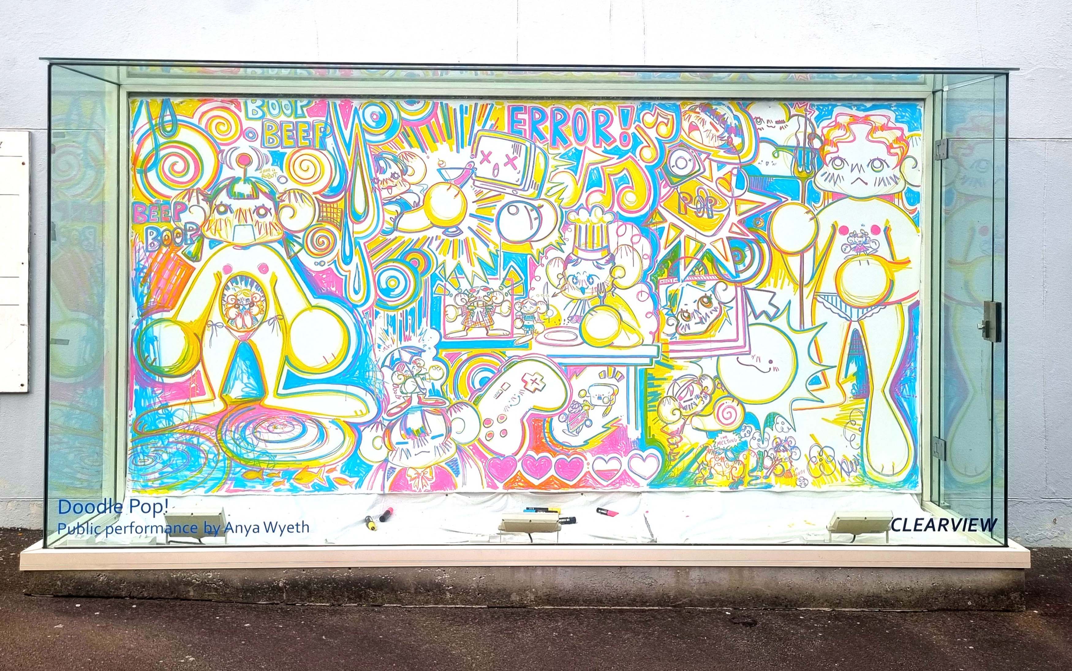"Doodle Pop!" 3.7m x 1.8m high. A live performance showing my process over the course of a week.