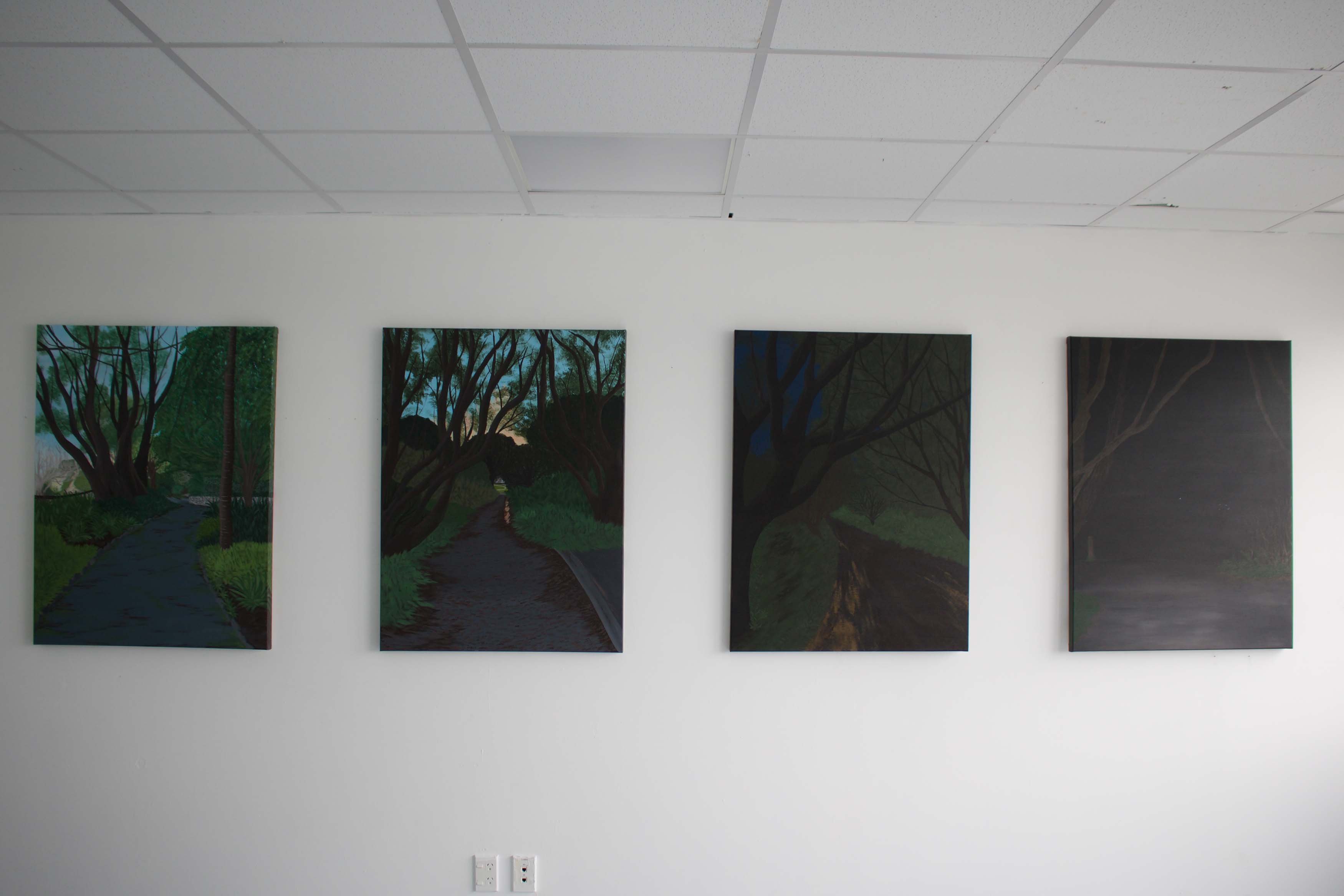 Do you see Something?, is an exploration of the natural world and human perception. It is a documentation of the world through my eyes and how shapes, sounds and surroundings change, deceiving our senses. The works use lighting to convey the passing of time through the changing of an environment. As the paintings progress, they become increasingly unrecognisable and the lack of identifiable shapes make you search for Something.