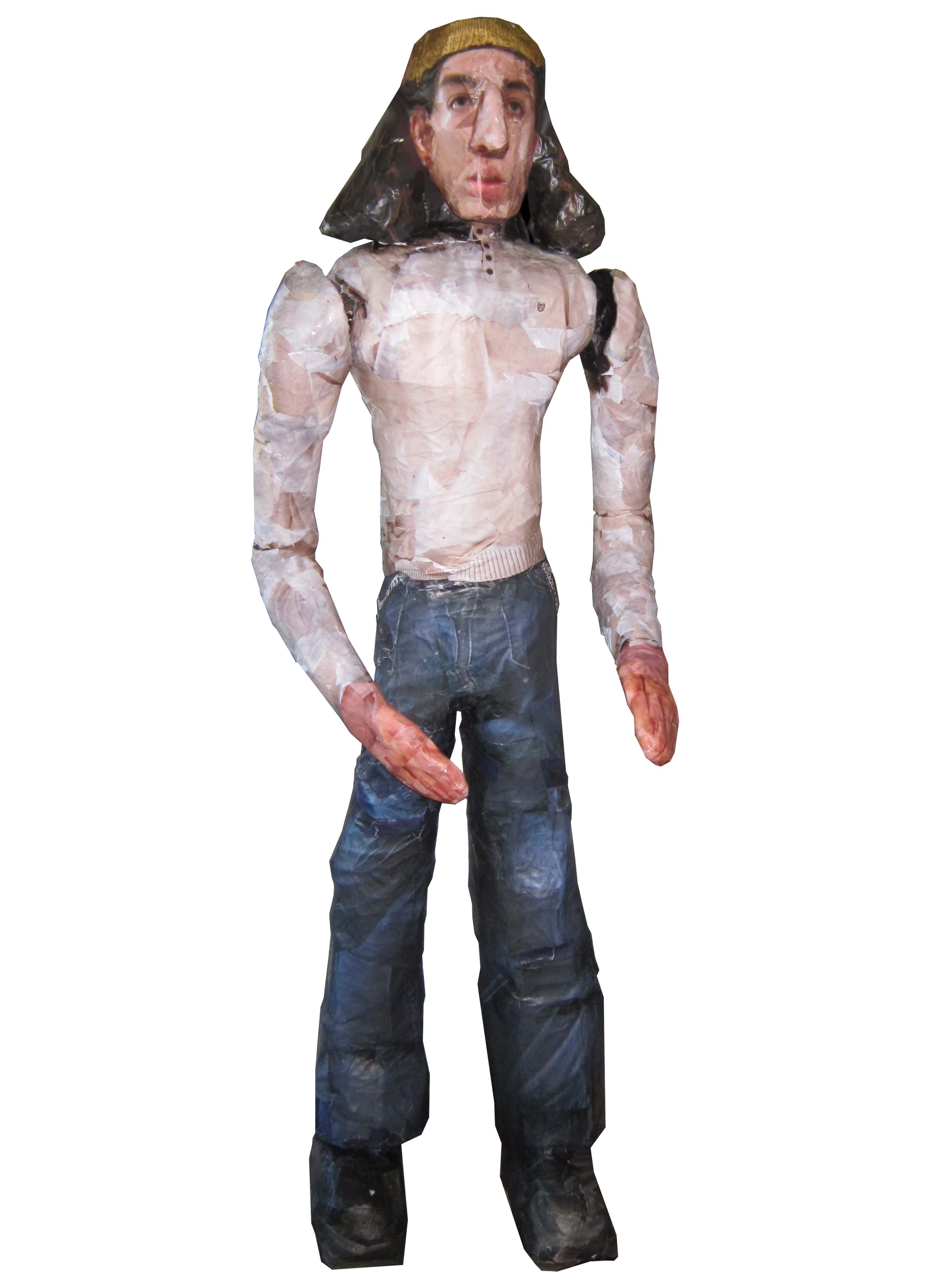 From being babbled at by a towering humanoid, to myself sitting inside a grotesque caricature, fruitlessly communicating with the outside world - the absurd endpoint was to simply present... myself. The Turk satirizes my perceived form, staring blankly and talking a bit too loud, a small computer running inside my removable scalp. My heart on a cardboard sleeve as I am spoken to, toyed with, and misunderstood for eternity.