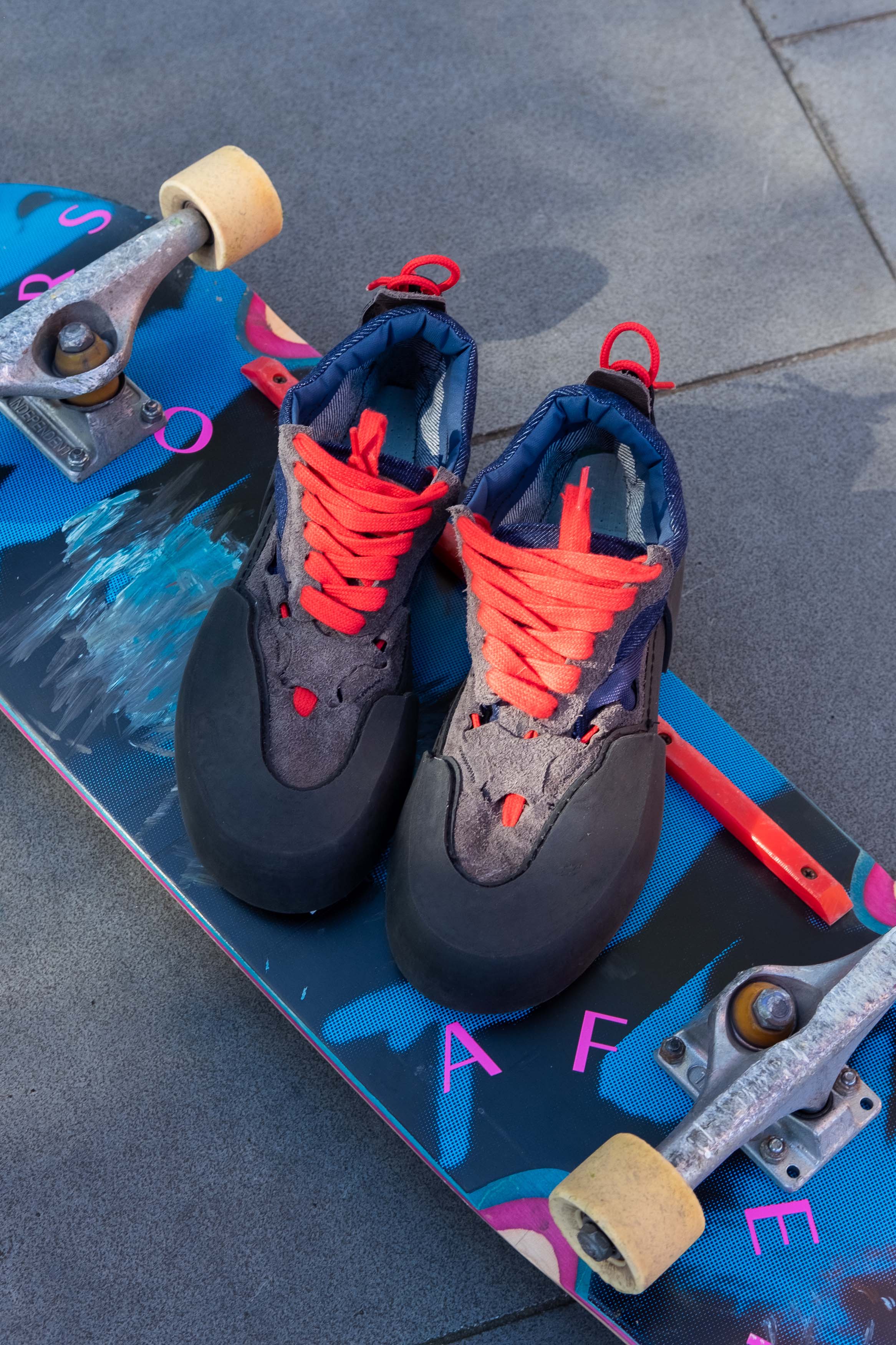 As a skater I have purchased and worn through countless pairs of shoes, and when the time comes to throw them away, I find it hard, as I have become attached to them, trying to make them last longer with temporary repairs. I chose to tackle the high consumption of performance skate shoes and come up with a sustainable and repairable solution. Which lead me to designing, Re-Tread. A sustainable and repairable skate shoe designed for skaters, by skaters. This project whakapapa's to The Pukeahu National War Memorial (Mems) and to the community who skate there.