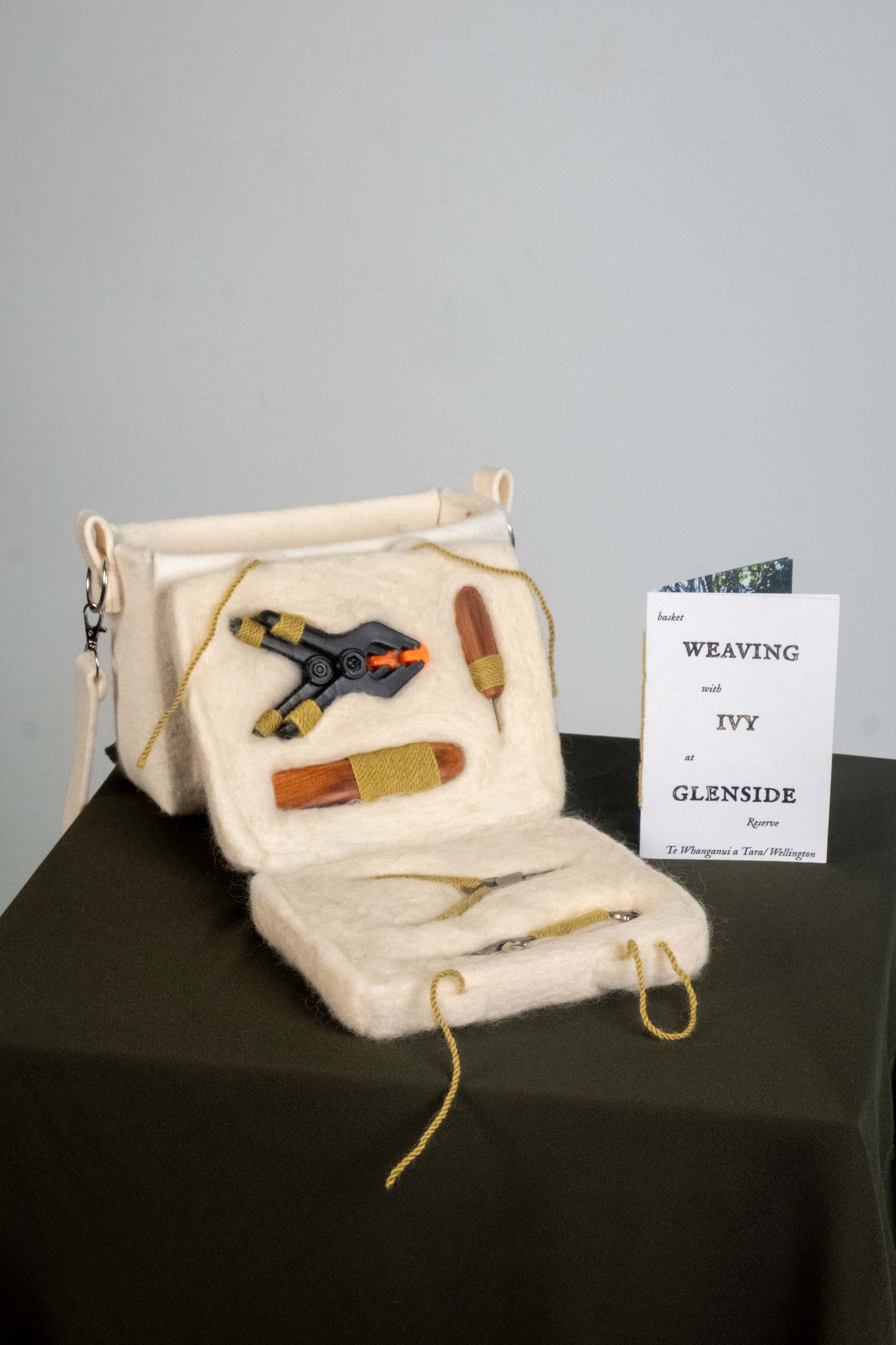 Toolkit for weaving baskets with ivy at Glenside Reserve, Wellington.