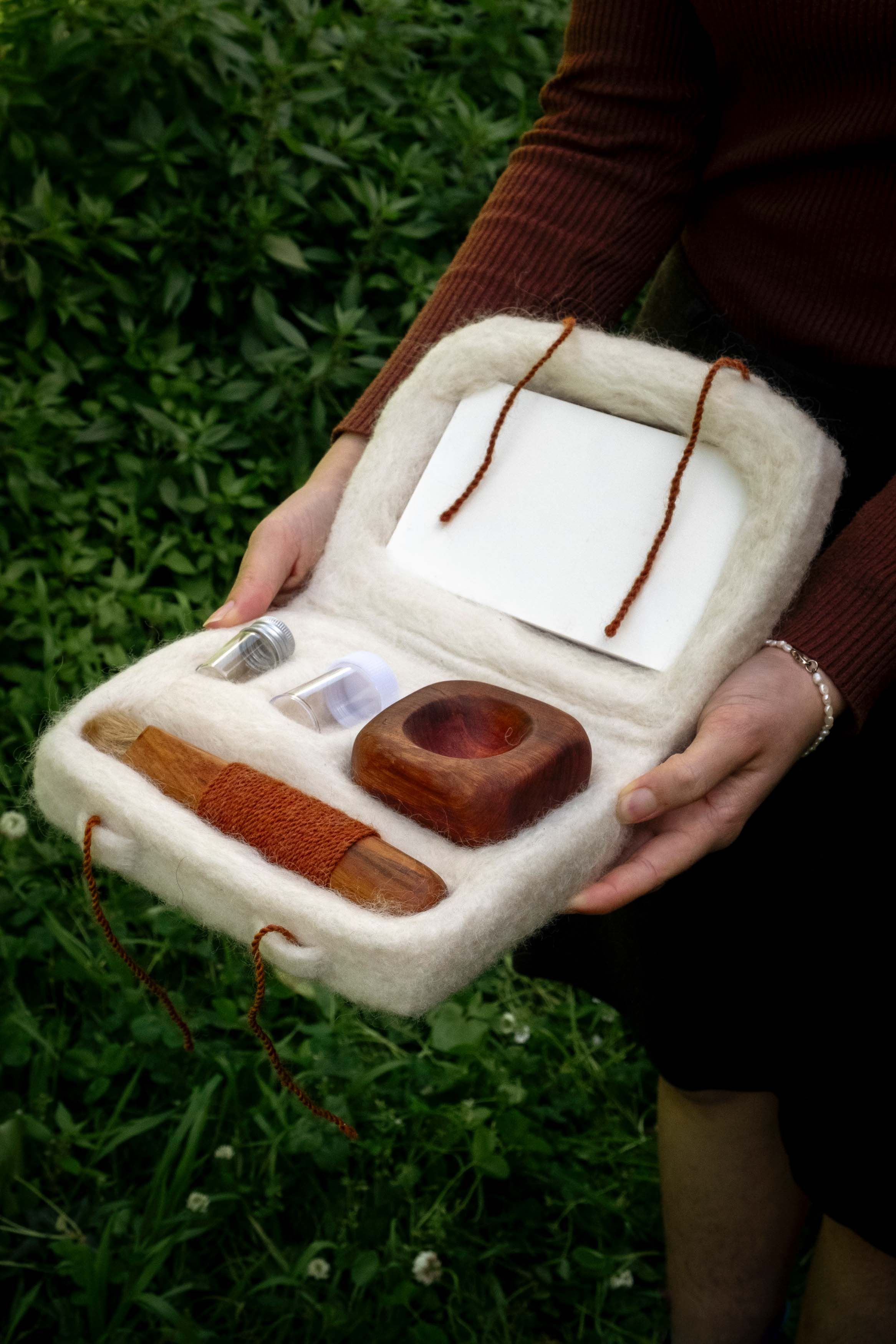 Anthotype kit in carry bag. Model: Marlena Koeninger