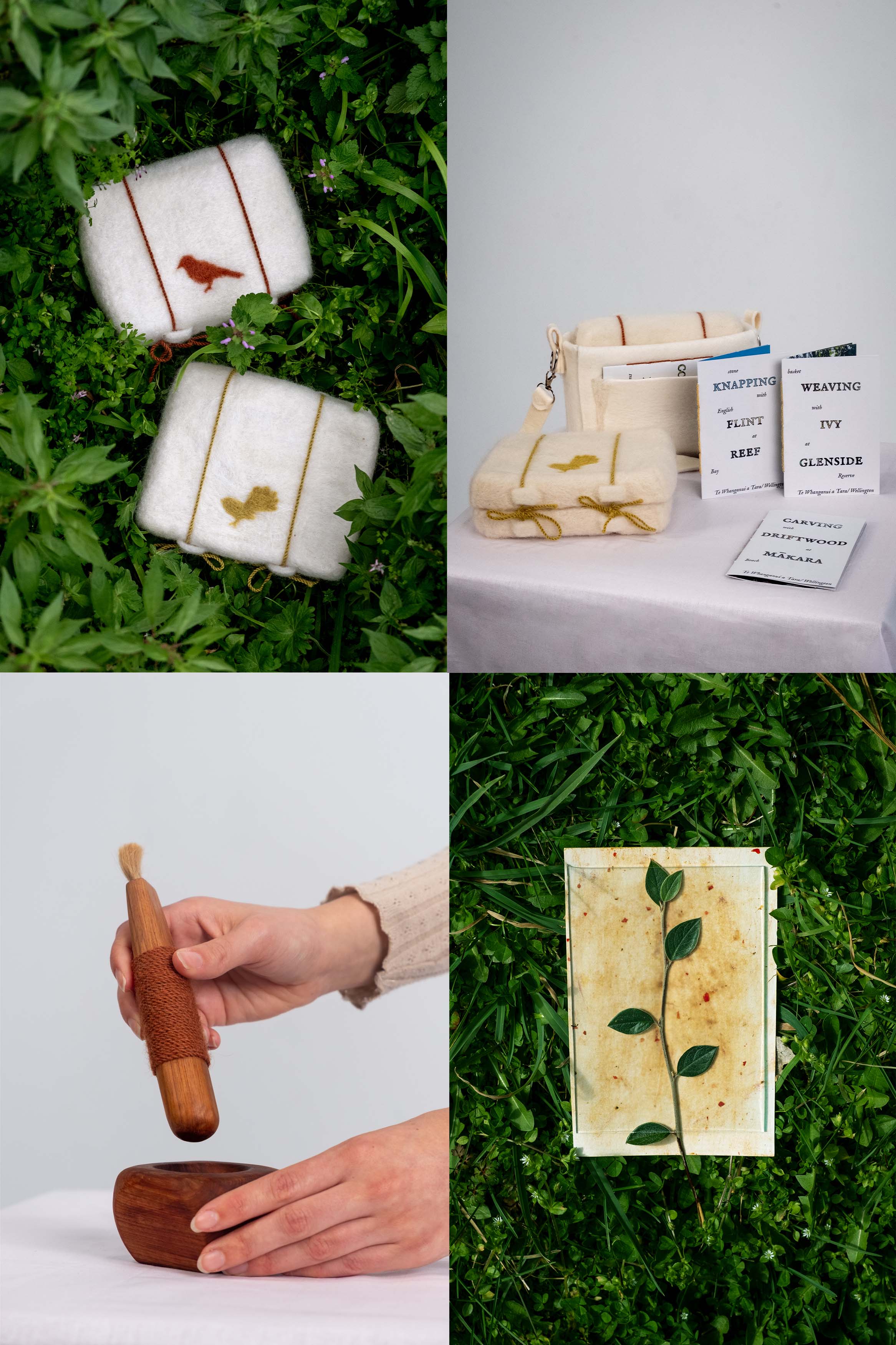 'Anthrotype: Imprint of a human' investigates the complexities of designing for a post-human Aotearoa. It interrogates the relationship between myself, a Pākehā designer, and the whenua, through material-based making practices. Each toolkit connects a way of making with a location, through a material found there. Through engaging with introduced materials, this project highlights the impacts of human activity on natural landscapes. These tools unleash potential for creativity and environmental restoration.