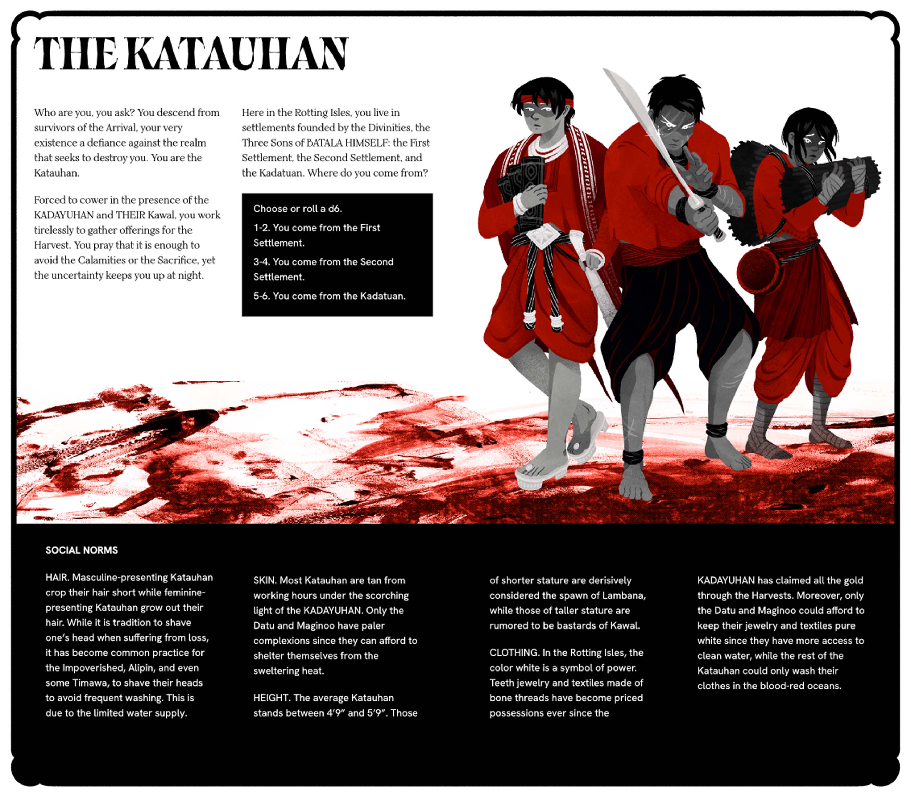 The Katauhan (or player characters). A sample spread from the On the Bones of BATALA Rule Book.