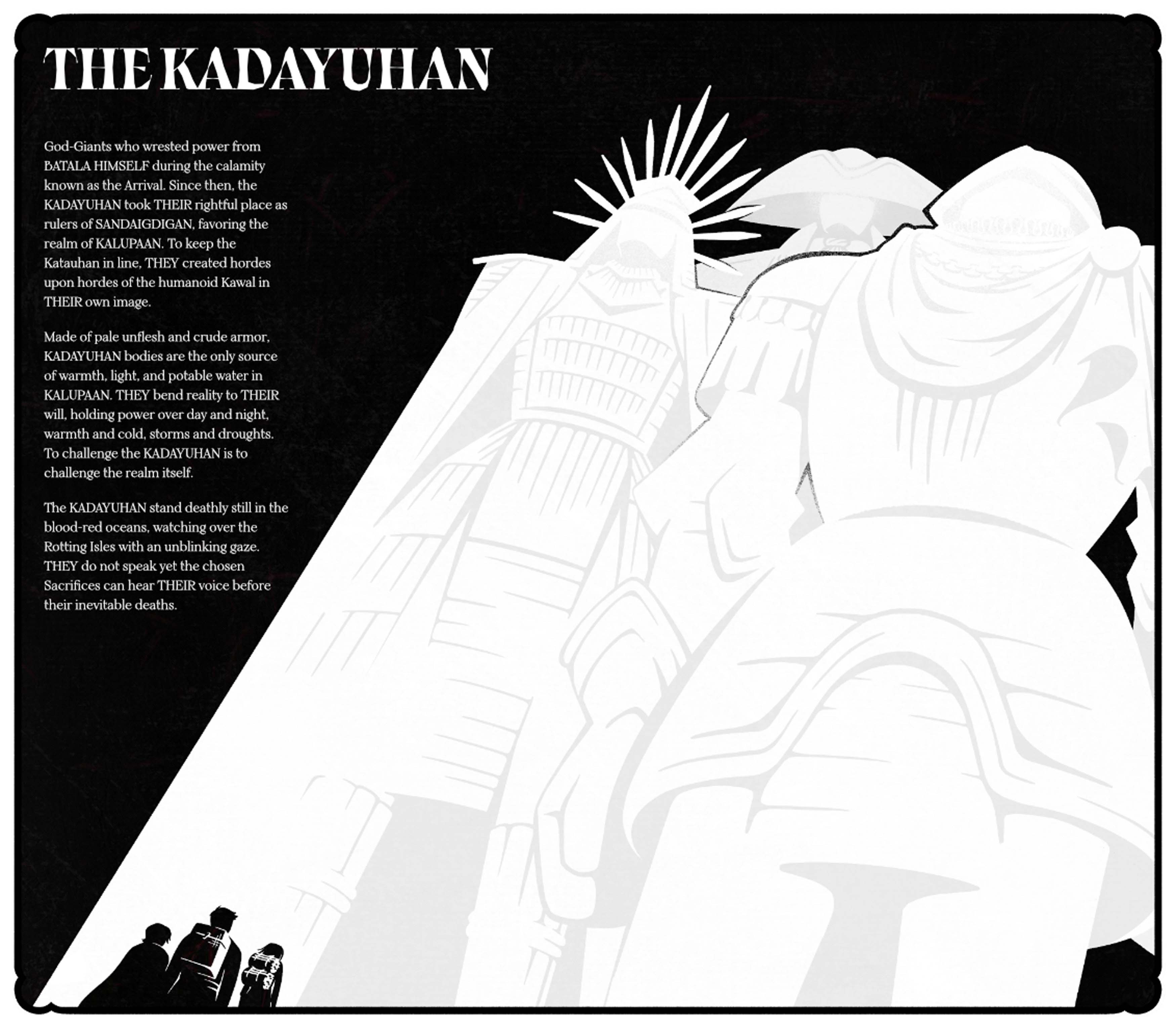 The KADAYUHAN. A sample spread from the On the Bones of BATALA Rule Book.