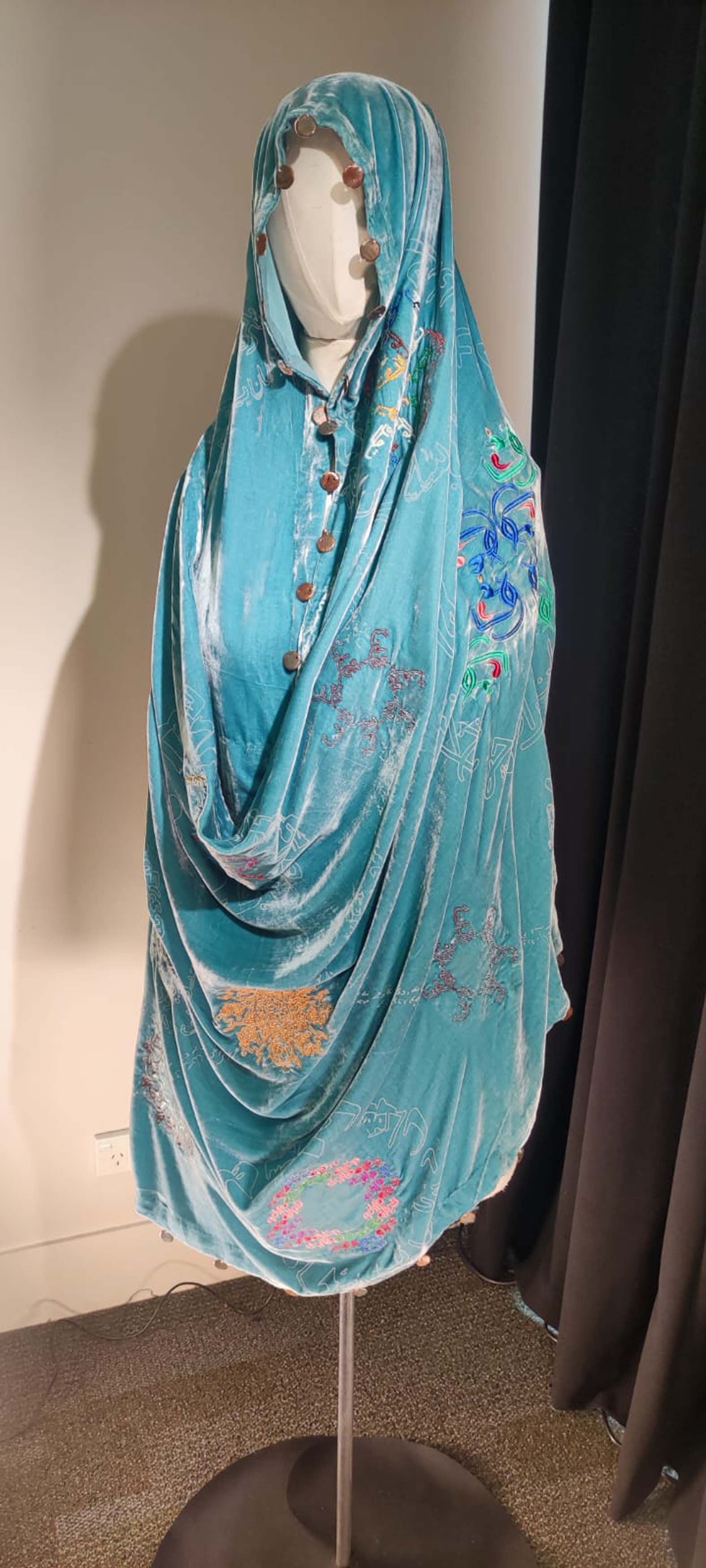 This project attempts to revive Pashtun identity through a velvet shawl intertwining Pashtu language, memory, and design. Created with laser etching and digital embroidery, featuring tappay (Pashtu poetry) representing Pashtunwali rendered in calligraphy chosen by community participants and transformed into motifs. The engraved tappay and embroidered codes form a living narrative of Pashtun values, women’s voices, and cultural resilience, pioneering a contemporary expression of tradition within the Pashtun diaspora of Aotearoa