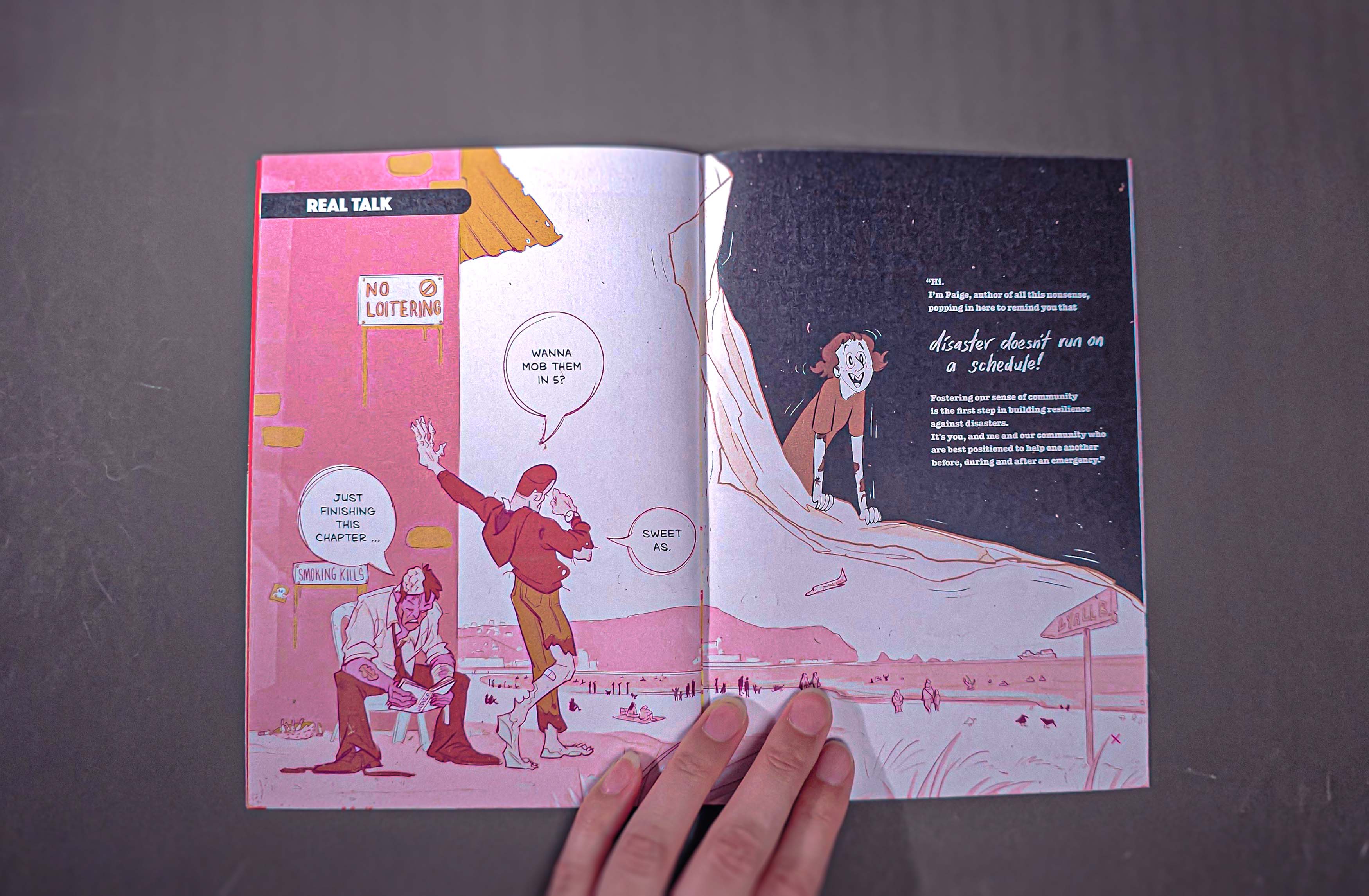 This research contributes to the field of disaster risk reduction by utilising visual storytelling to emphasise the critical role of resilient communities in mitigating the impacts of climate-accelerated disasters, which disproportionately affect vulnerable populations. The Peninsula, a fictional pānui, explores the mātauranga Māori principle of whakawhanaungatanga through the depiction of ordinary members from the Miramar Peninsula community in tongue-in-cheek survival situations during an ongoing zombie catastrophe.