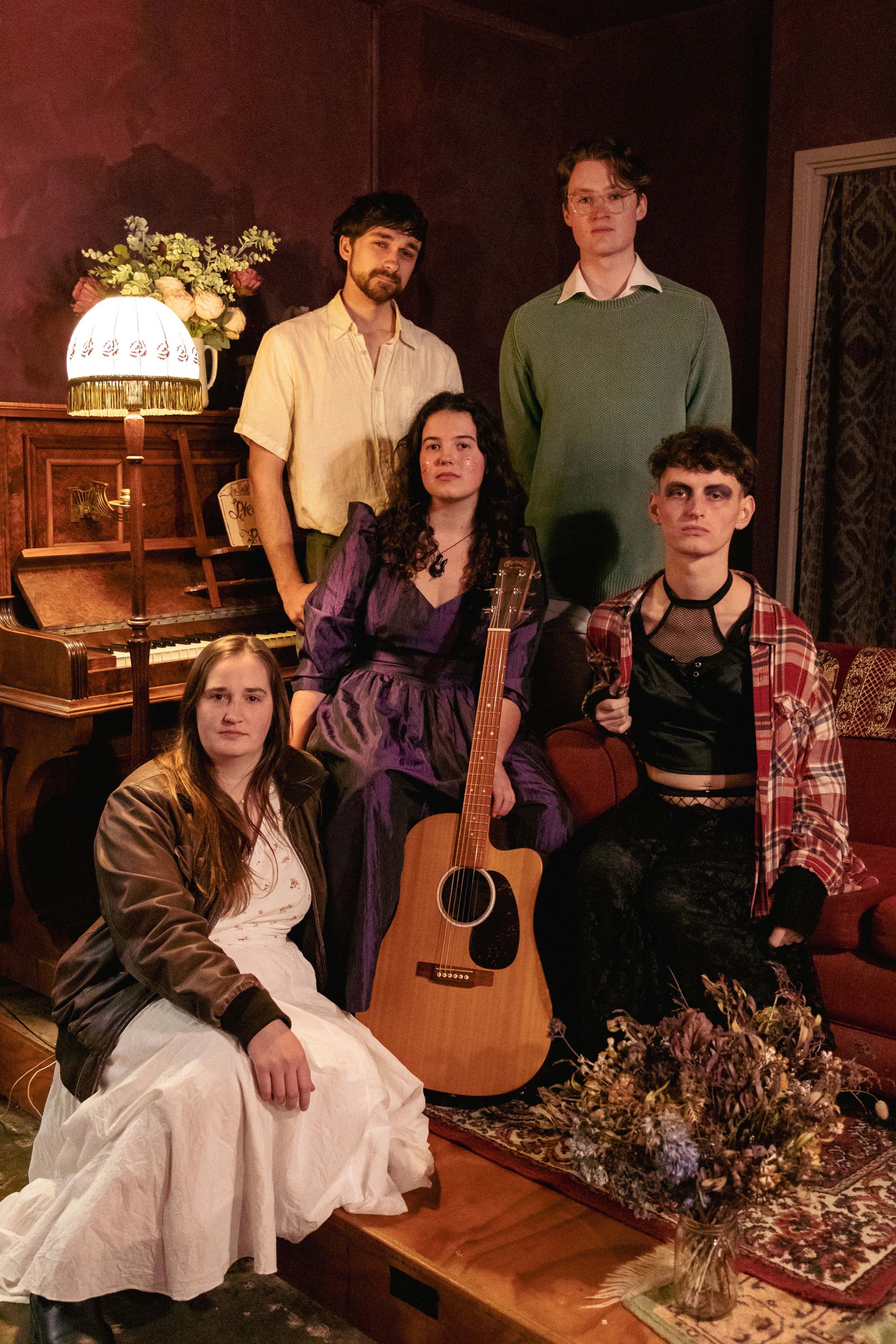 Lucy Summerfield + Band from left to right: Joanna Dann (cello), Toby Sussex (guitar,vocals), Lucy Summerfield (guitar, vocals), Aiden Hosie (drums), Hazel Elder (bass)