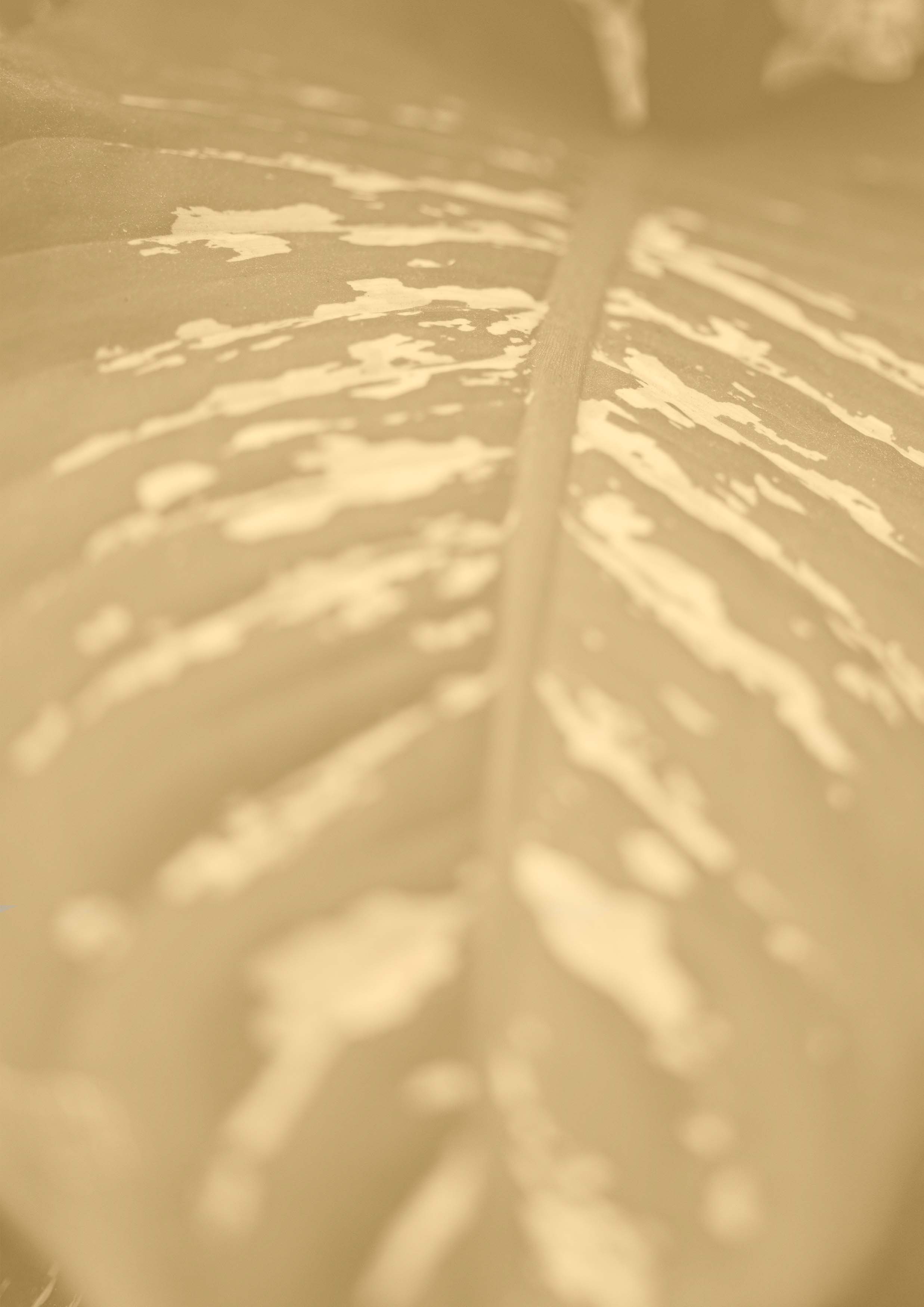 Photograph of Leopard Lily (Dieffenbachia) dyed using Kōwhai flower petals.