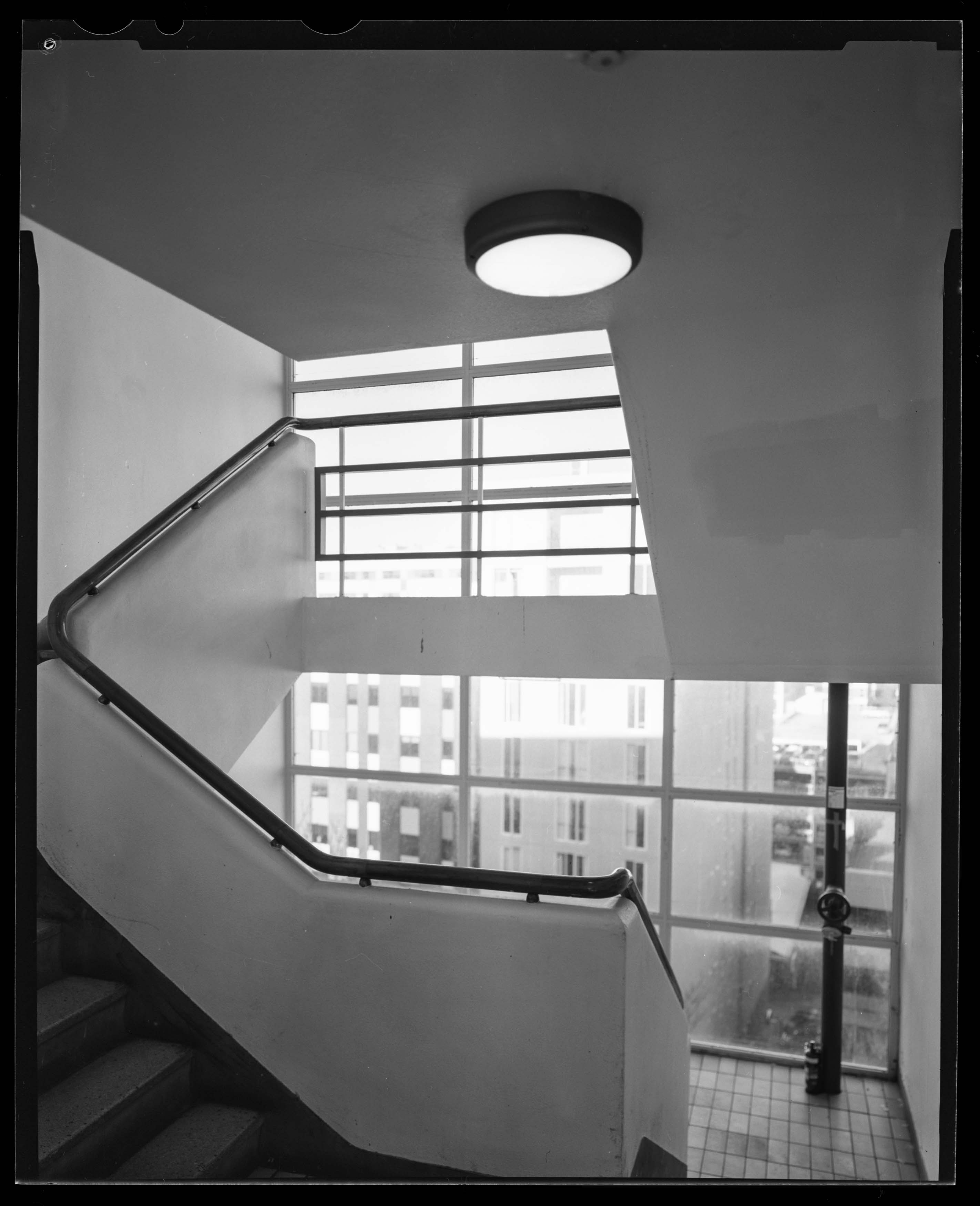 Dixon Street Flats, staircase. Photographed on large format film and printed on fibre-based darkroom paper.