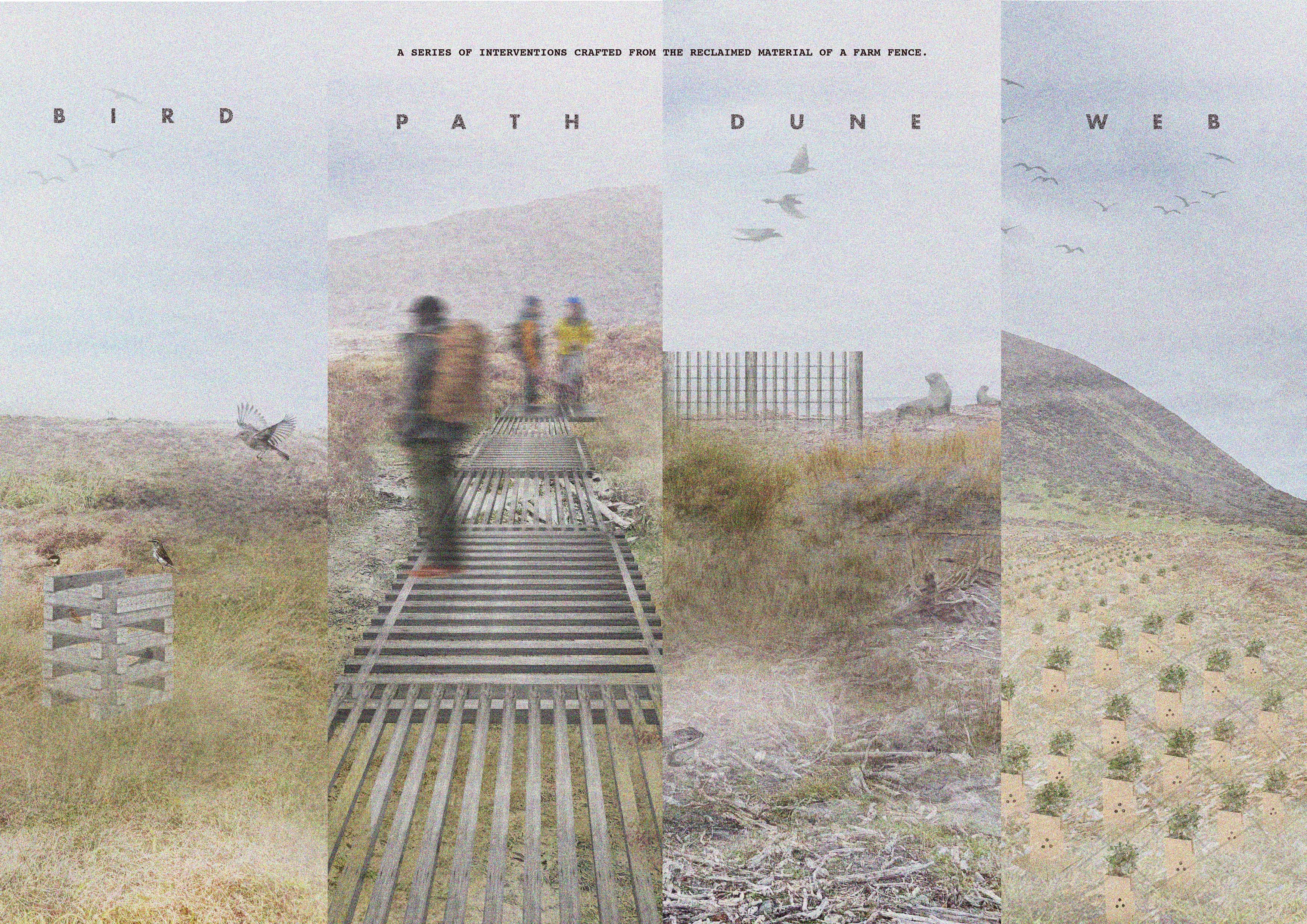 Dotted Lines is motivated to move with, rather than against non-human ambition. Informed by Donna Haraway’s concept of situated knowledges, it proposes an alternative strategy to conventional conservation. A 4.8-kilometer farm fence becomes a deconstructed interface, repurposed to question colonial ideals and environmental passivity. Through a non-human perspective, this project reimagines architecture as a means of listening to, and collaborating with the living dynamics of place.