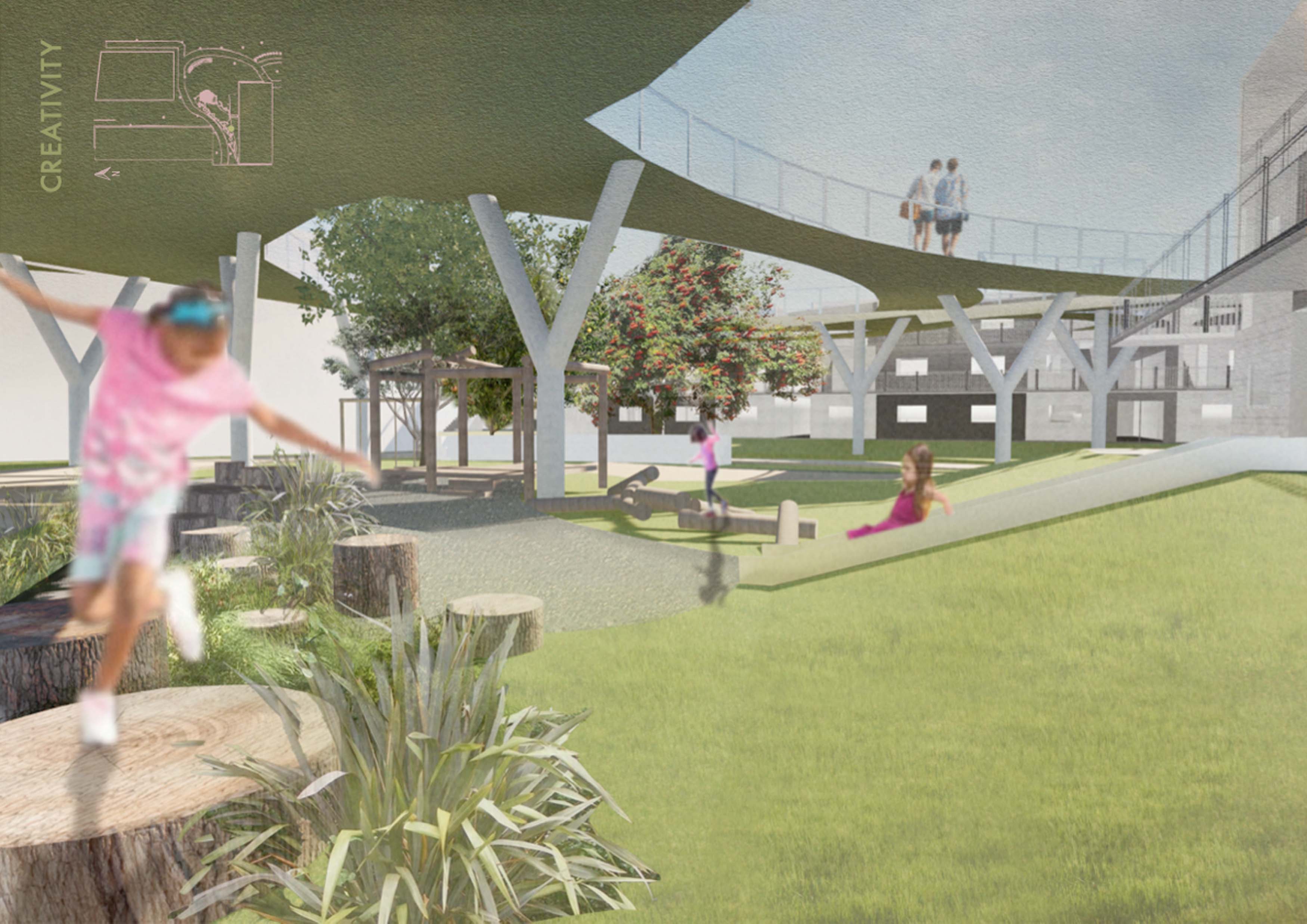 Urban Awakening is a speculative design strategy that builds upon the current framework and typologies of Kainga Ora housing developments. The project engages with adaptive reuse design strategies and sustainable design theories to recenter social and environmental ecologies. Drawing from the past social ecologies of this site, the design restores the relationship between people, spatial infrastructure, and the environment, to transform an abandoned space into a socially rich, community-driven place.
