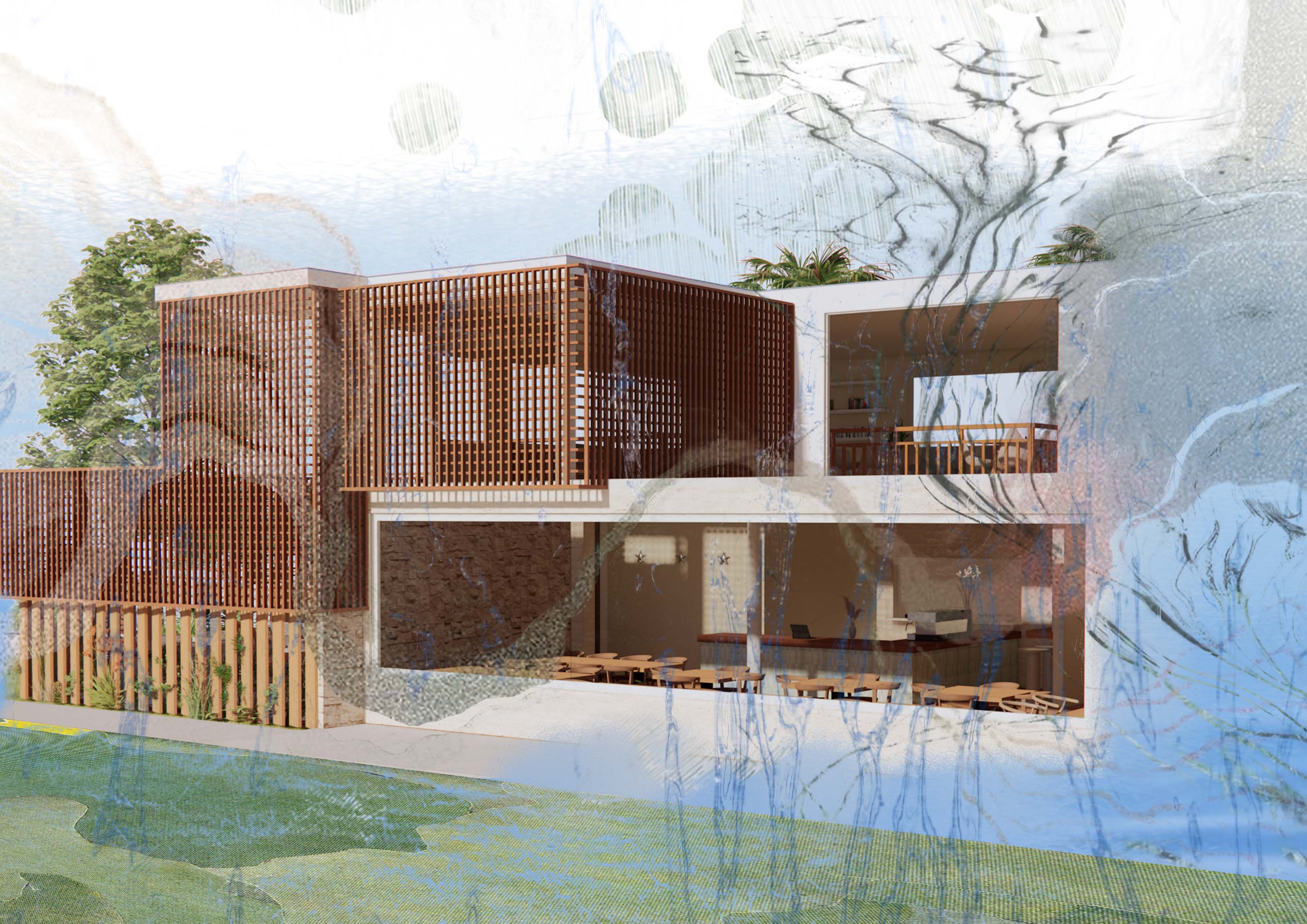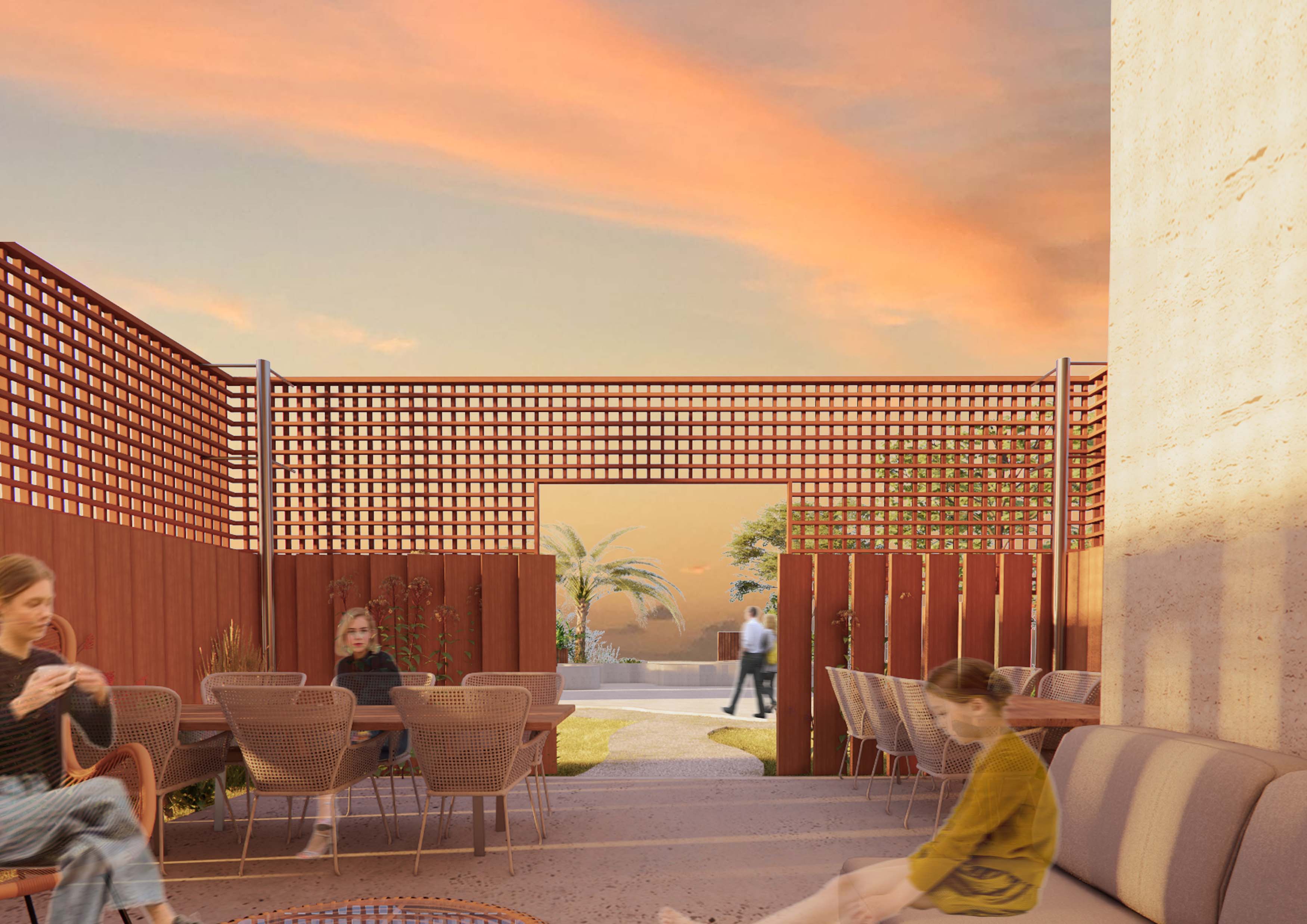 The Grove is a sheltered sanctuary where permeable facades and abundant planting invite sensory connection with the whenua—feeling breezes, hearing leaves—before transitioning into the garden beyond.