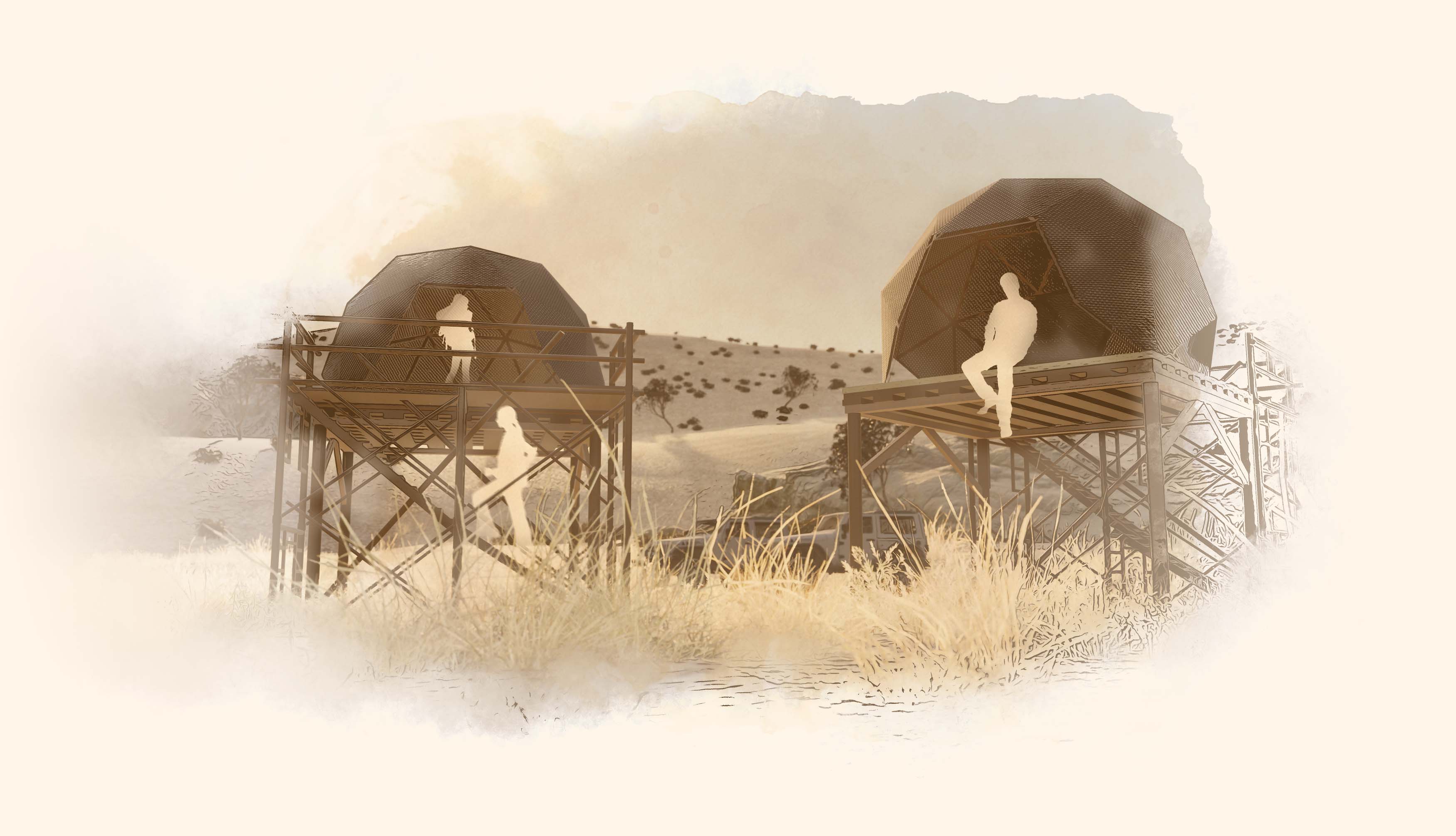 Veins of the Garub reimagines a Namibian game farm as an ecotourism experience centred on co-existence with desert ecologies. Pathways and shelter points encourage quiet observation and spatial awareness, transforming a once-extractive landscape into a site of reflection and care. Through acts of sheltering and observation, the project reframes tourism as adaptation rather than dominance, inviting visitors to engage respectfully with climate, memory, and the resilience of place.