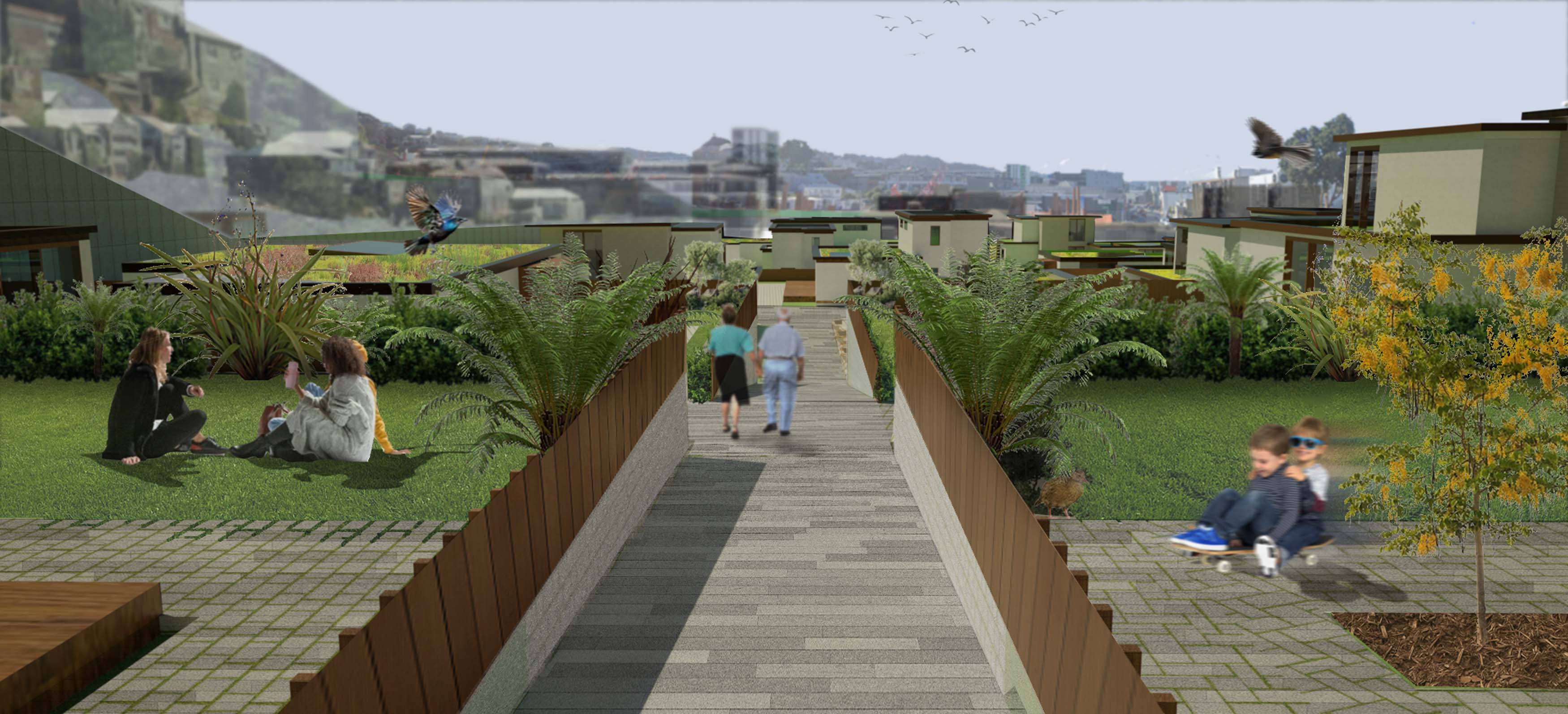‘More Than Home’ is a social housing residence for multigenerational families, accommodating various relational dynamics. The site's spatial planning connects people to place, with a more-than-human perspective shaping the architectural design and the fundamental social structure. The design incorporates climate-sensitive design and co-living spaces aimed at facilitating connections among residents and with surrounding ecologies. Located at the Arlington Apartments site, this project seeks to establish a low-rise, medium-density, environmentally sensitive community in Te Whanganui-a-Tara