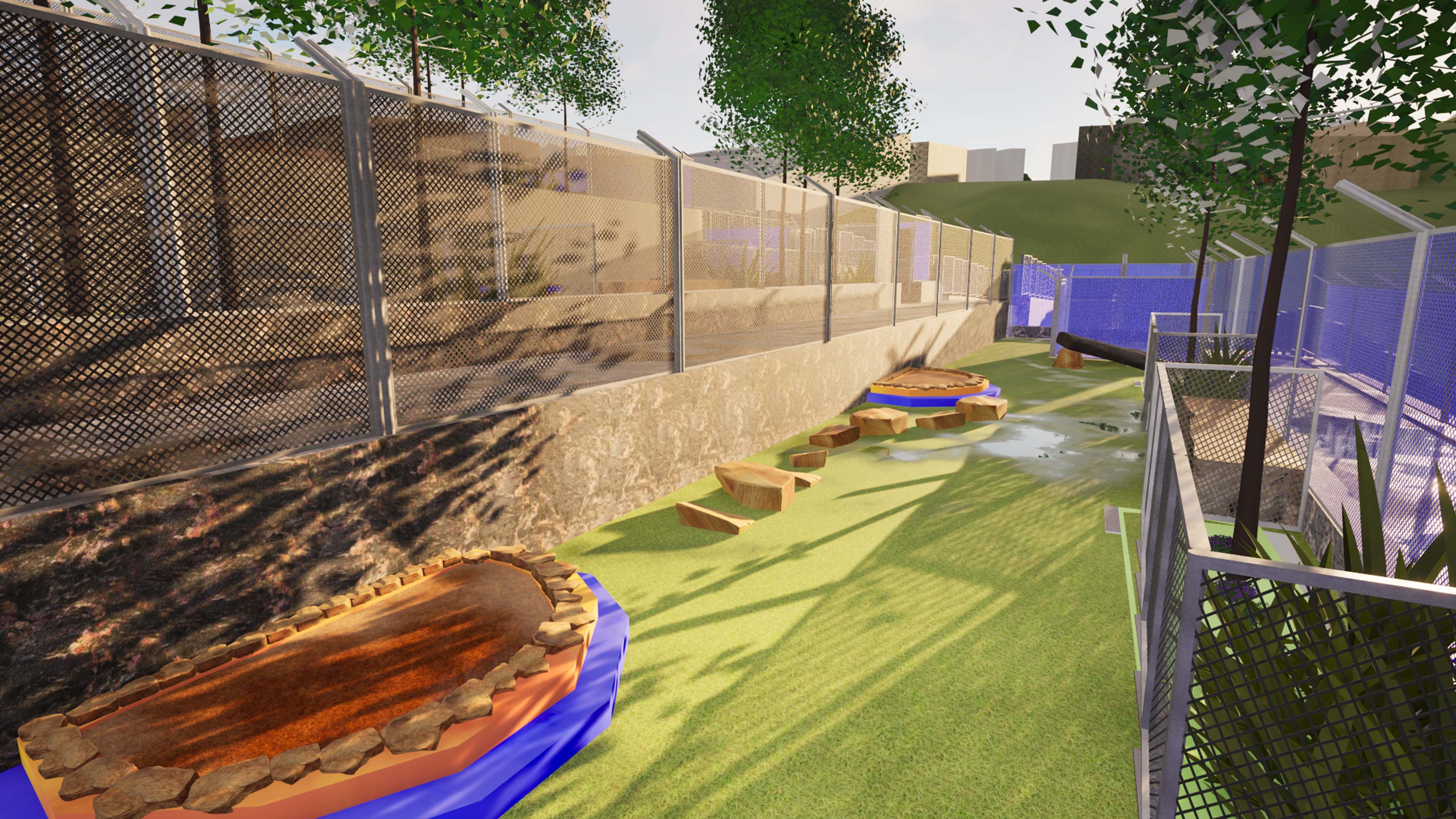 "Ruff Ruff Reserve" is an urban landscape project, focusing on creating an ecologically balanced and functional public space for dogs and their owners. Rich with dog recreational obstacles and environmentally beneficial systems, Ruff Ruff Reserve focuses on eco-friendly materials and designs, embodying the requirements of a biophilic space and the initiative to help protect our planet. Many of our dog parks in Wellington fit cookie cutter layouts and lack diversity. Surrounding the generic dog park is the growing fear of health and safety risks around dog aggression and territorial incidents. However, this park is working towards dispelling this anxiety and those stereotypes by preventing these risks; a safe park means more enjoyment for all. This project will take place in Woof Woof Ruff on The Terrace, one such cookie cutter dog park being the only one in the area. I plan to transform this park, bringing life and structure through biophilic design. Aiming for a more welcoming, accessible and inclusive park for all visitors and dogs, focusing on well-being, security and environmental health.