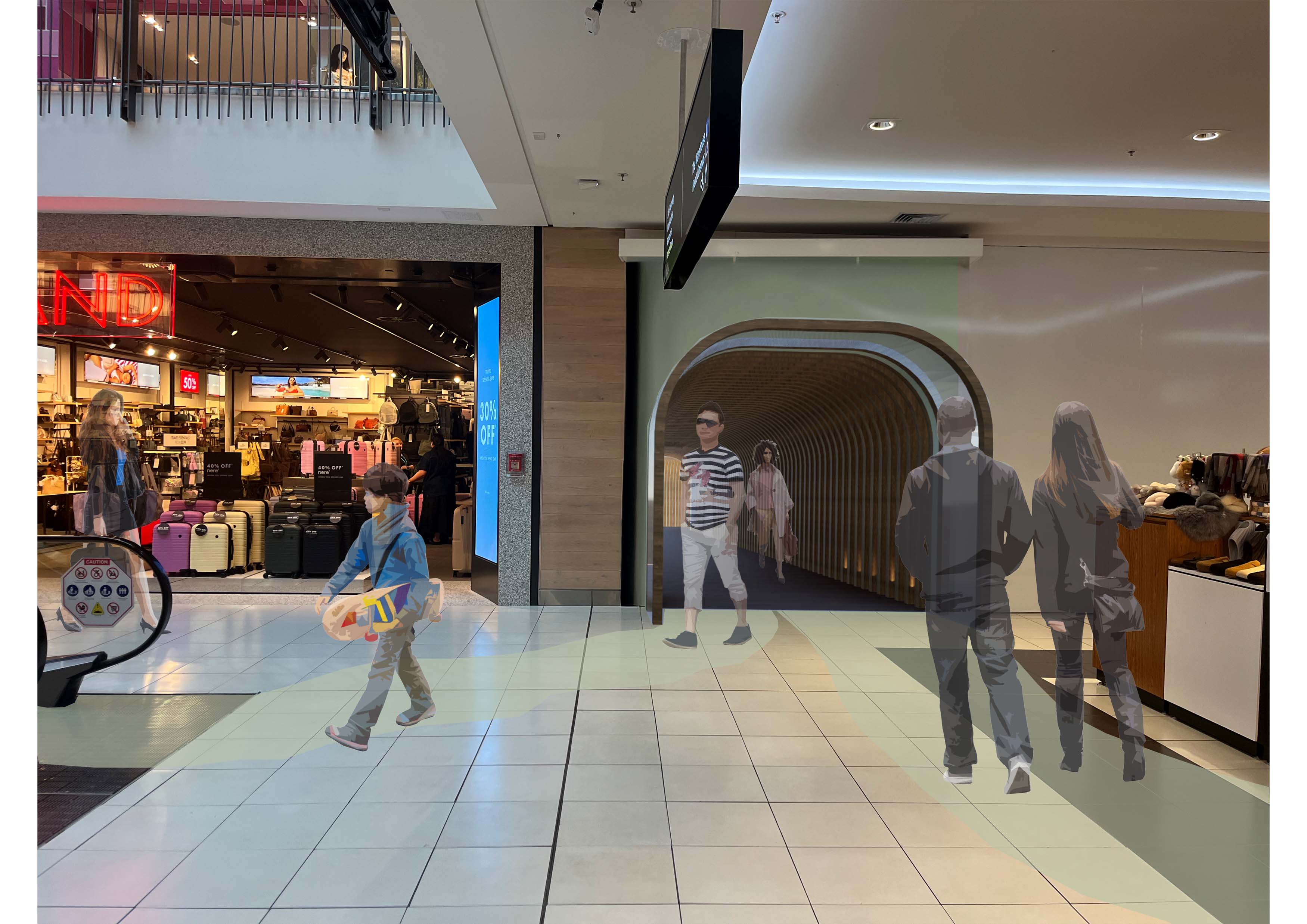 Perspective showing how the Sensory Pathway is integrated within the Shopping centre