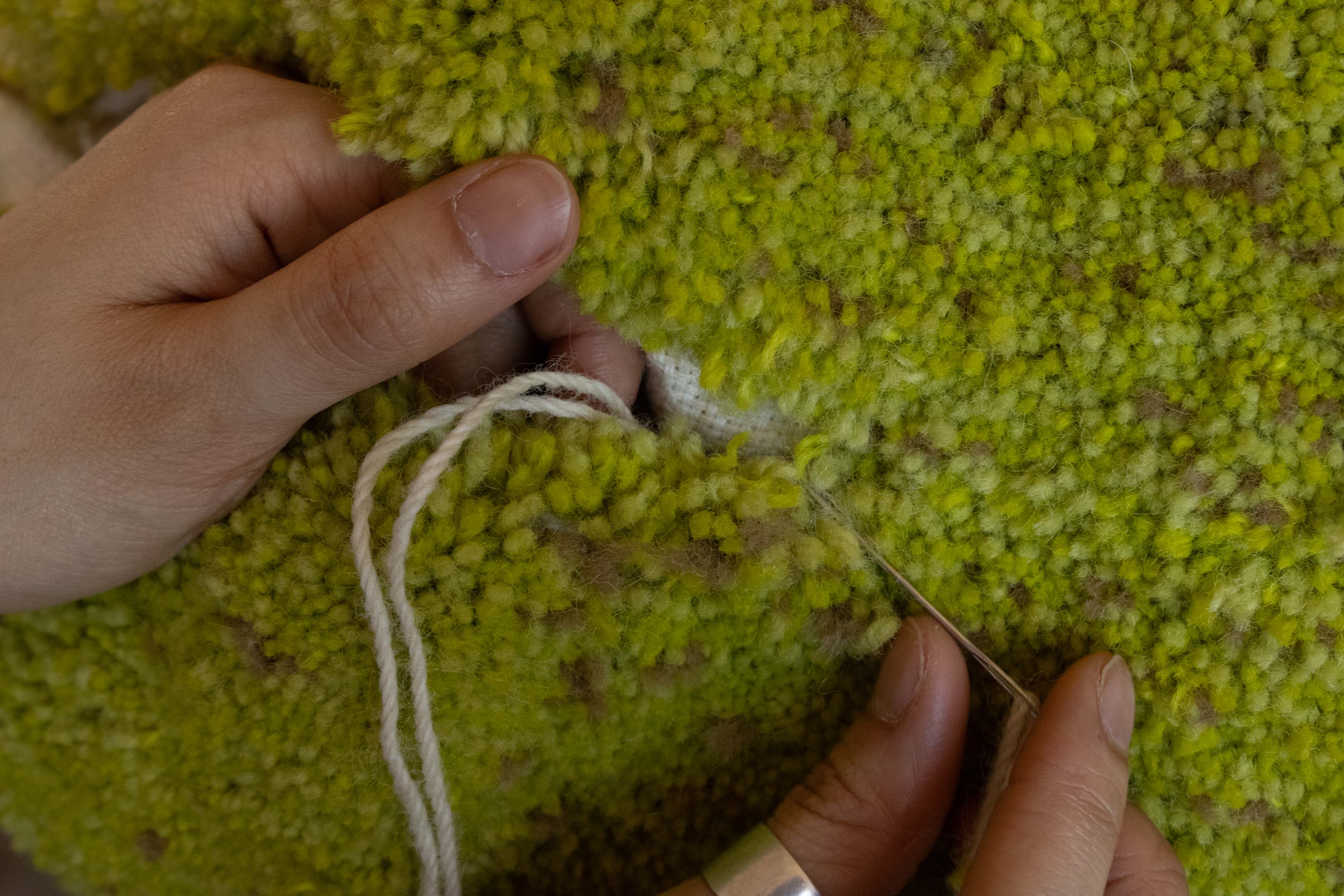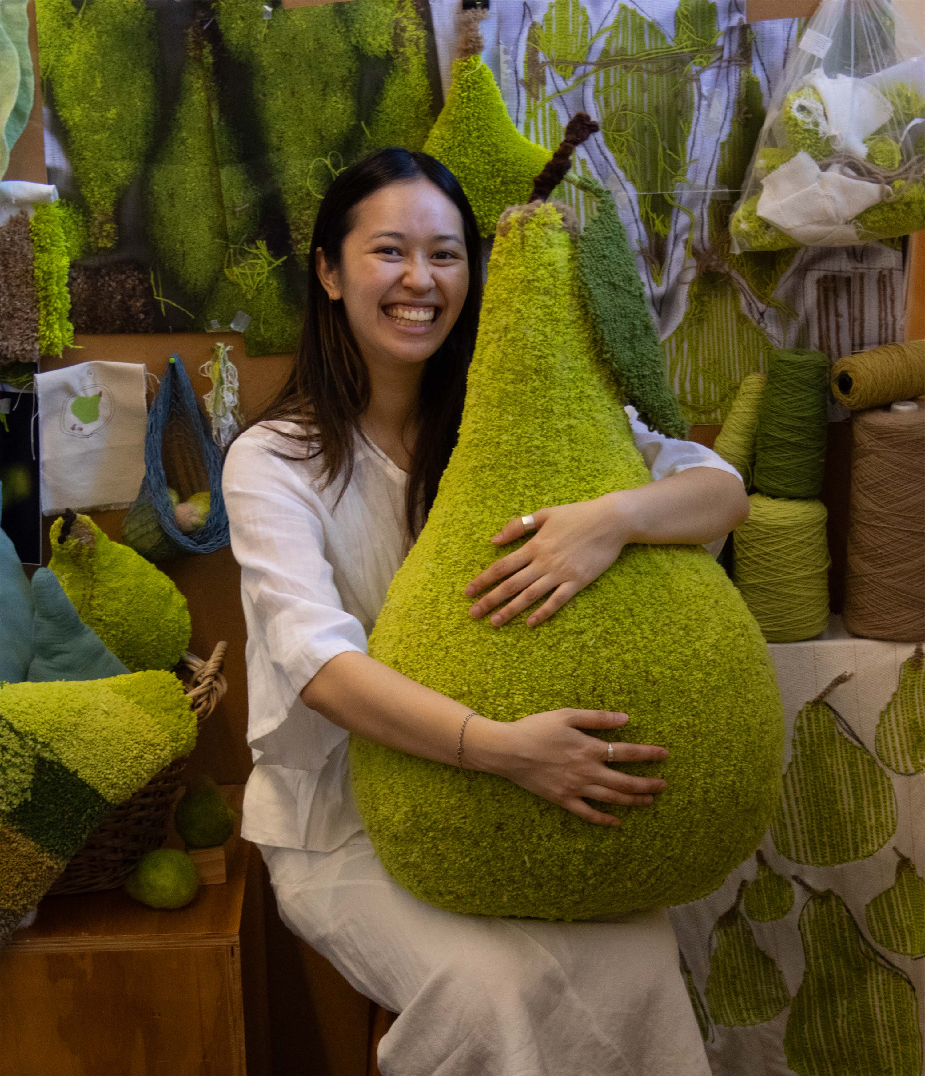 Fruits of Labour! Celebrating the invisible labours behind the seams of textile design practice through a fruitful metaphor. It takes an orchard of experience to nurture a rug-tufted pear. A harvest season which took over 120 hours to materialize. At a scale larger than life, it beckons one to embrace the efforts involved and encourage the perception of how see the ubiquitous subject as fruit in new ways and ‘a-pear-ciating’ all the efforts involved!