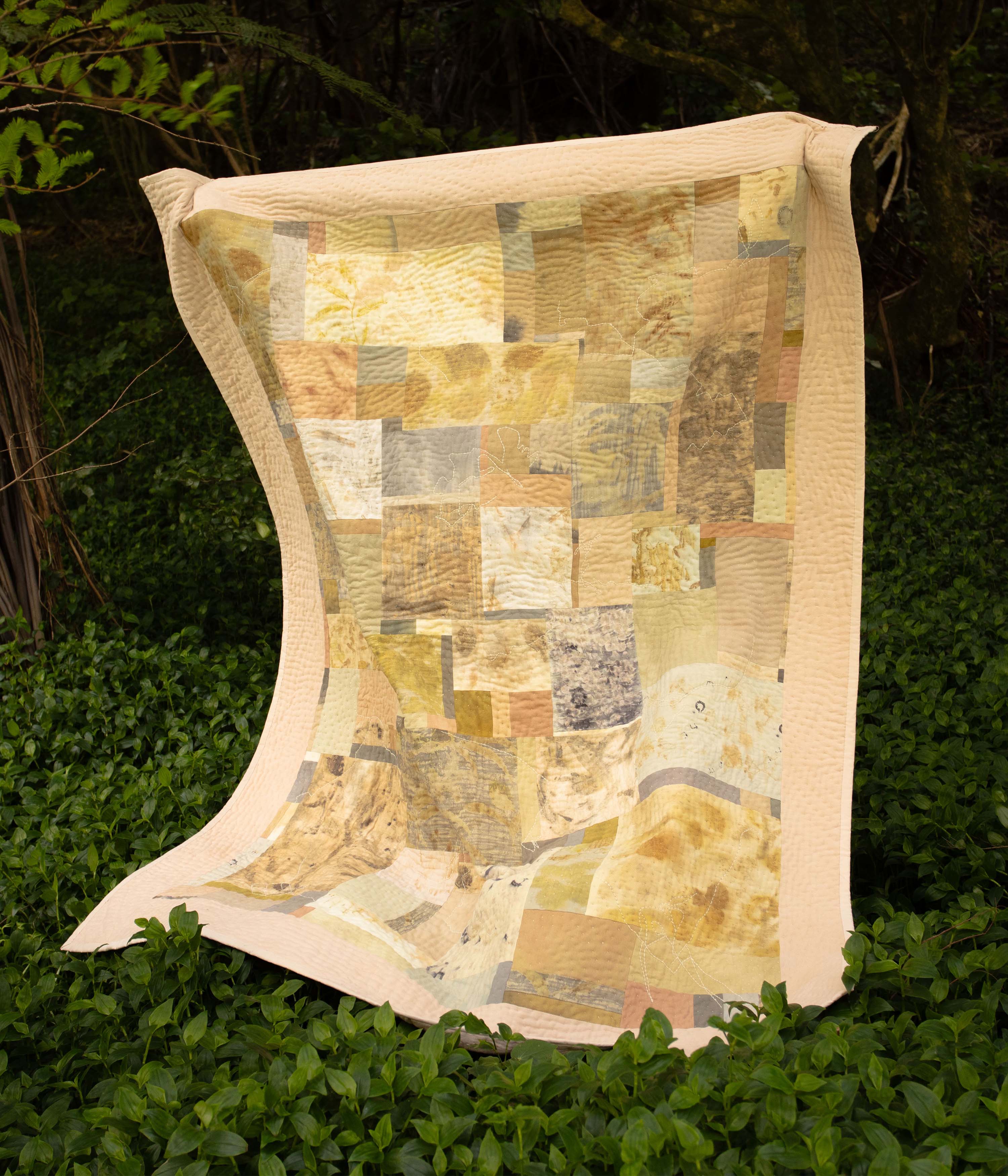 Final quilt, captured in Aro Valley where plant material was sourced, photograph by Tia Aston
