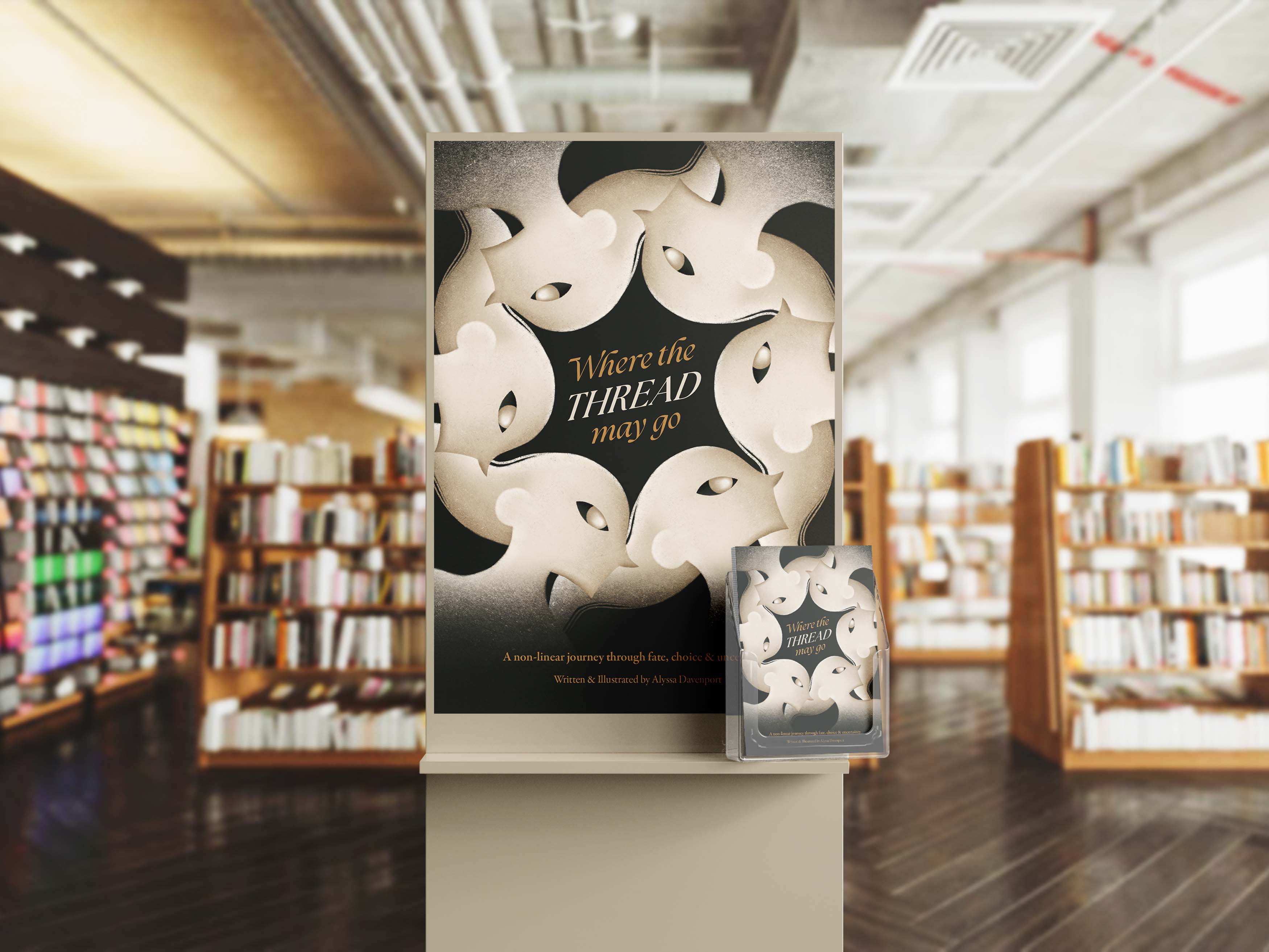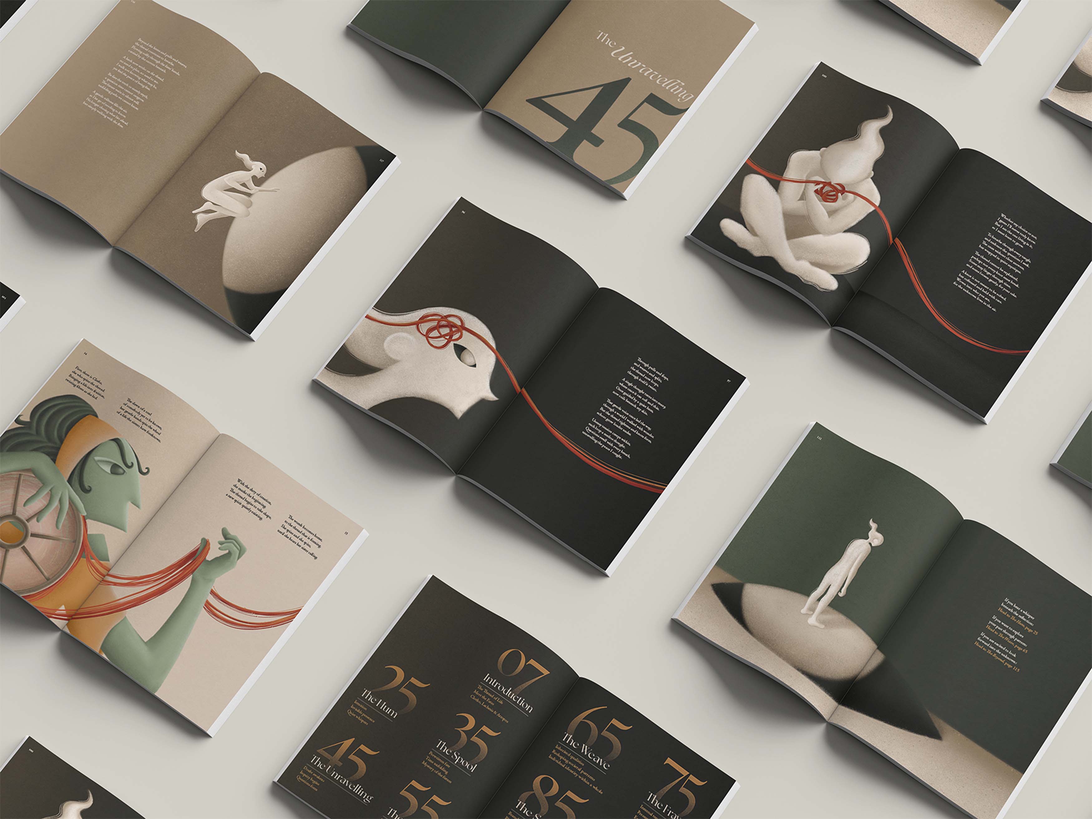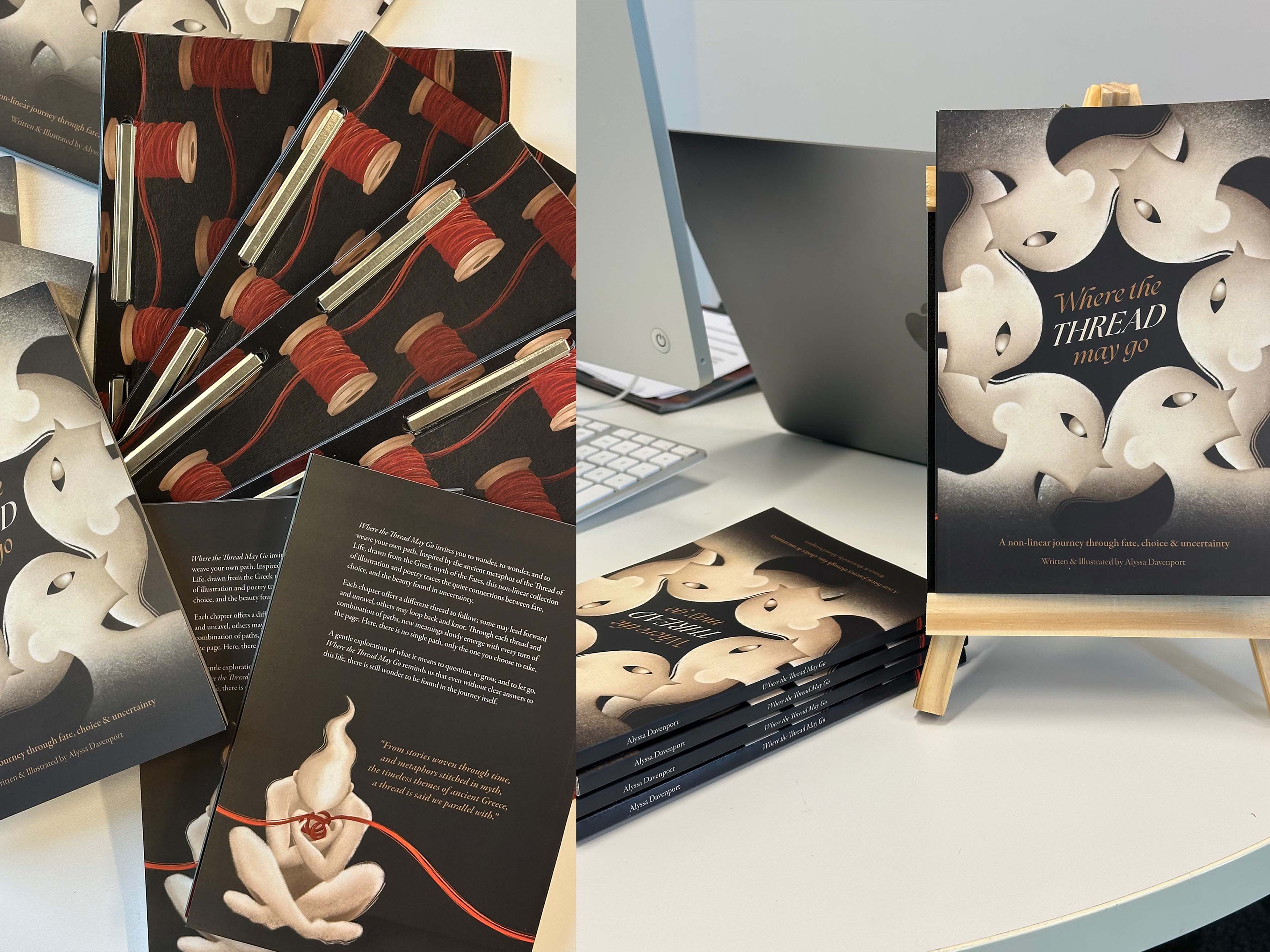 Where The Thread May Go is a non-linear illustration and poetry book centred on the Thread of Life, a metaphor for existence drawn from the Greek myth of the Fates. Audiences are invited to weave their own path through the book’s sections, shaping a personal and reflective journey. Each chapter explores themes of fate, choice, and uncertainty, all intertwined within the central metaphor of the Thread of Life.
