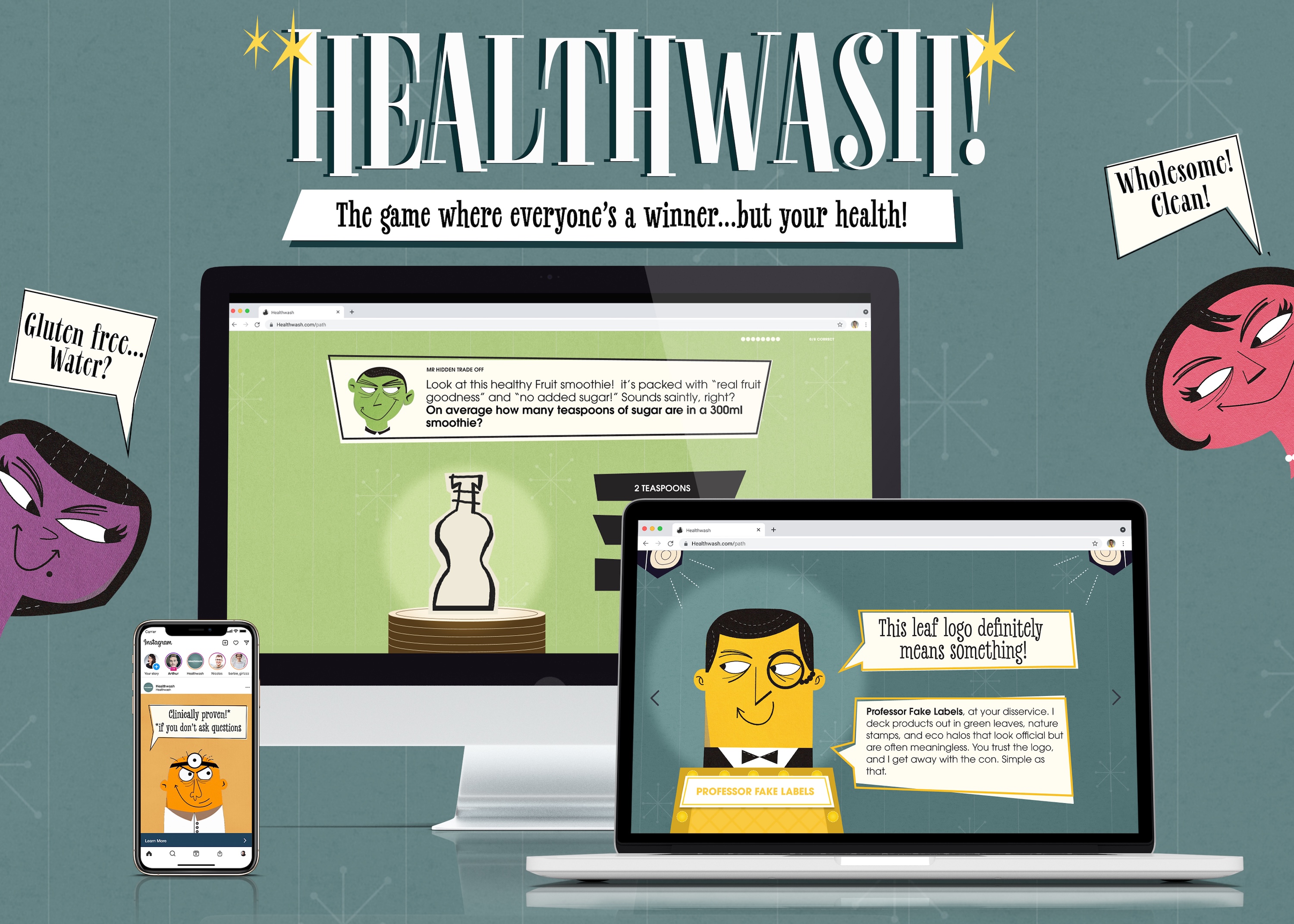 Healthwash: An interactive website using gamification and satire to educate young adults on deceptive health marketing.
