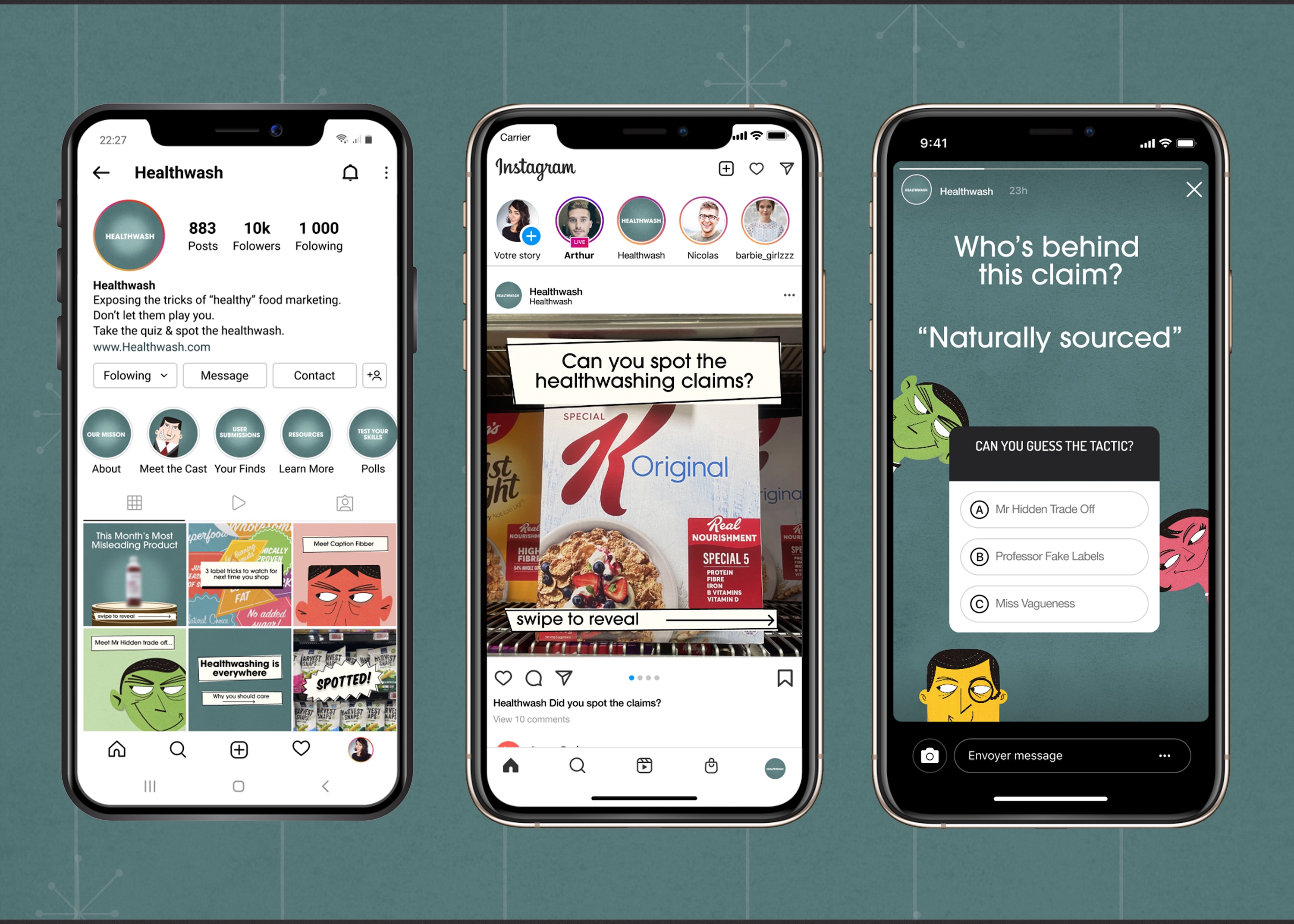 The Healthwash Instagram continues the campaign’s tone of voice, fostering a community-driven space for learning and awareness.