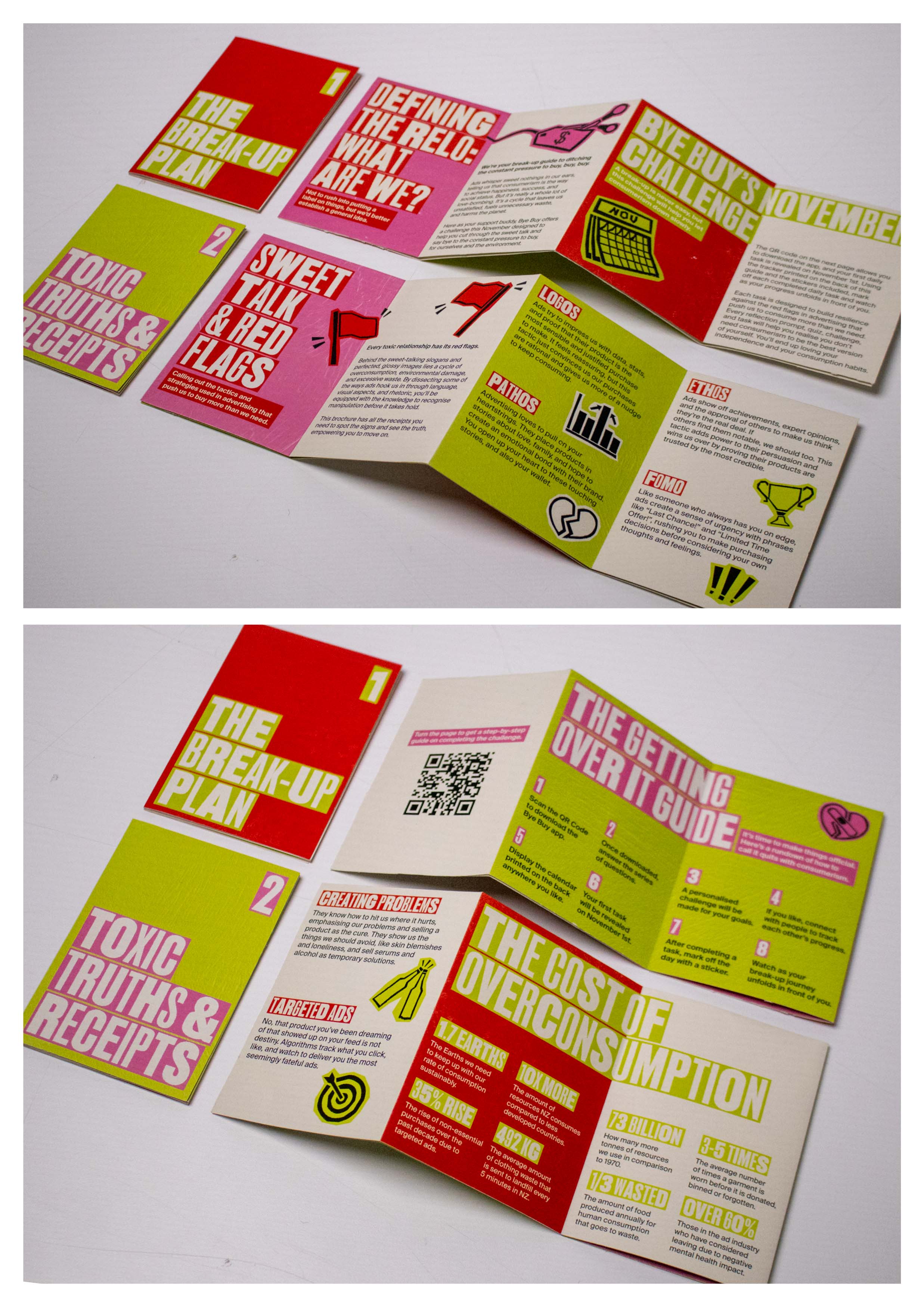 Brochure 1: 'The Break-Up Plan' & Brochure 2: 'Toxic Truths and Receipts'.