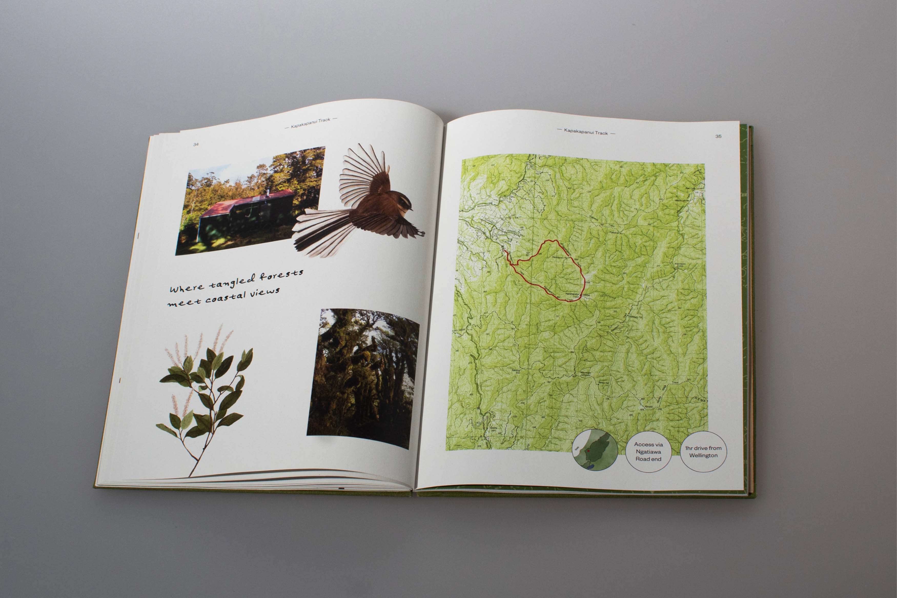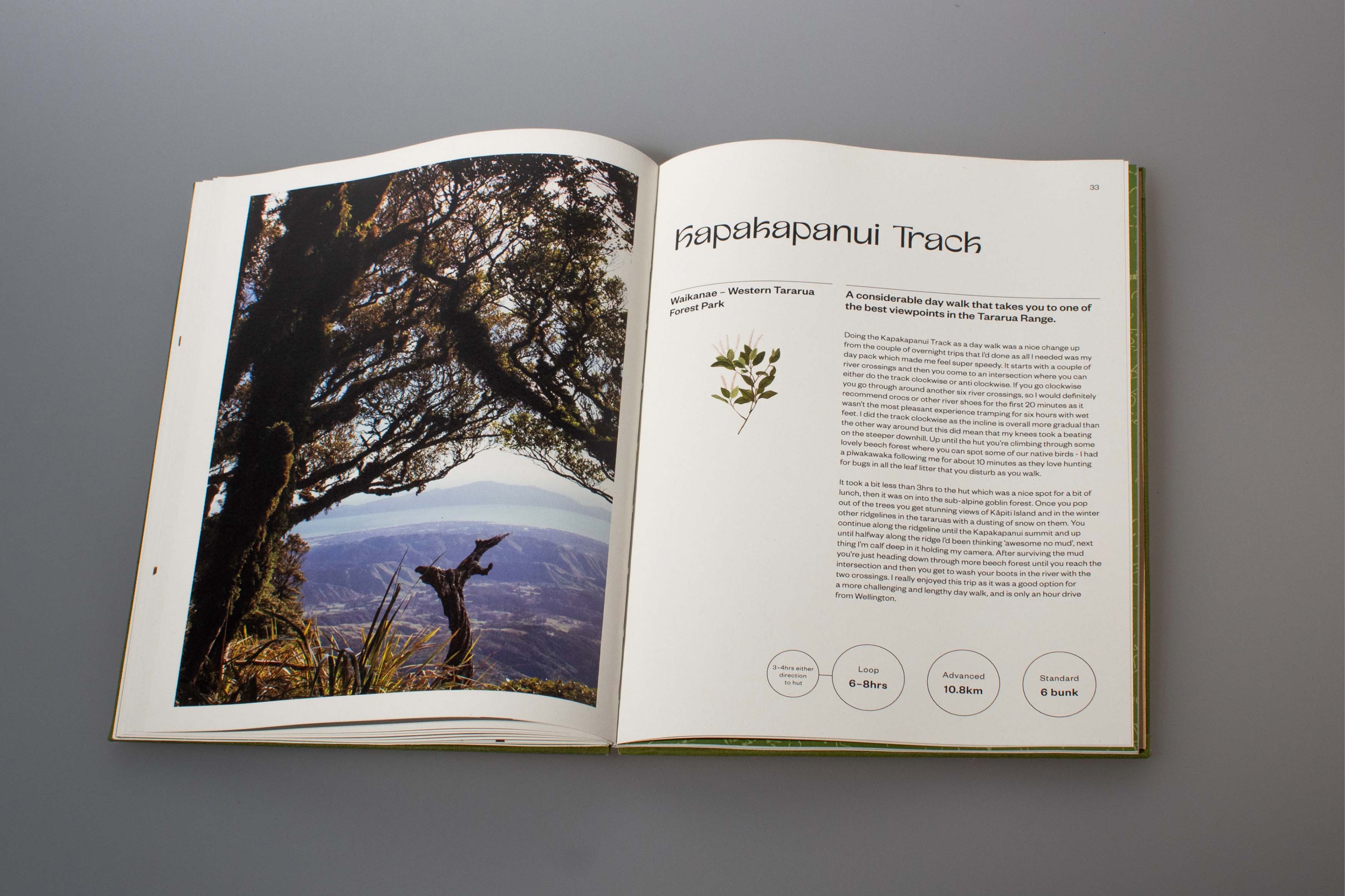 ‘The Hills Around Here’ is a coffee table style guide-book that takes you on a journey through Wellington’s backcountry huts. It’s designed to help trampers new to the Wellington region to explore it by providing a singular planning resource. It combines painting and photography to illustrate the beautiful landscapes, flora, and fauna, as well as containing essential information to help plan tramps.