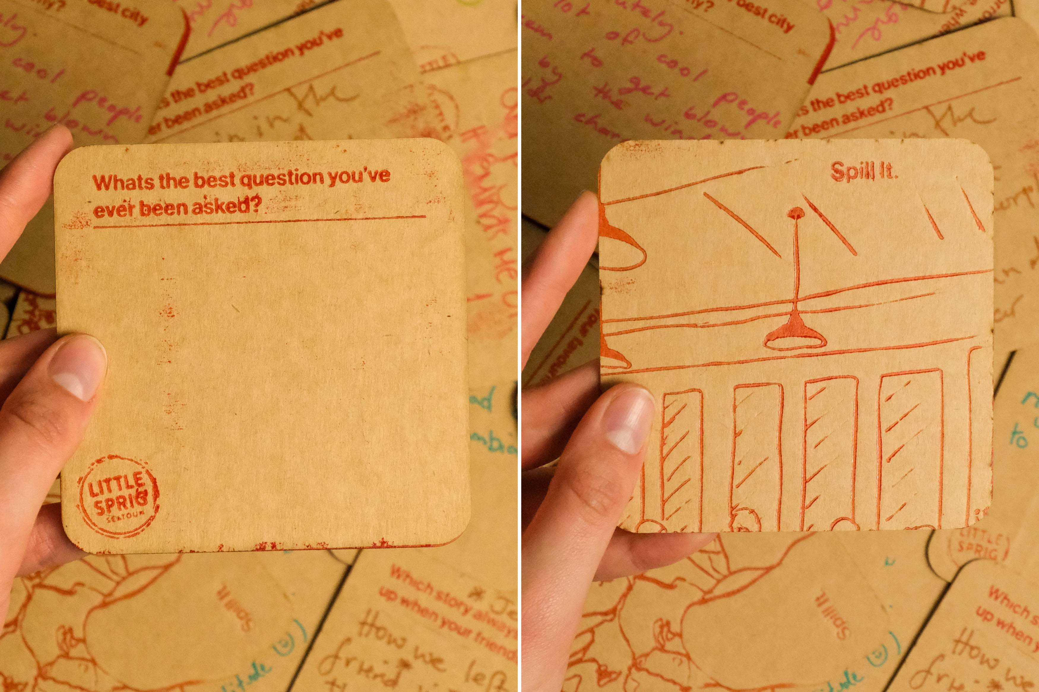 Spill It is a storytelling tool designed for local pubs to capture the stories, memories, and moments that give their spaces meaning. Using interactive coasters and digital/physical archives, the project transforms everyday interactions into an evolving collection of community life. Developed in collaboration with Little Sprig Seatoun, Spill It celebrates the voices that shape local identity, showing how design can help preserve connection and shared experience.