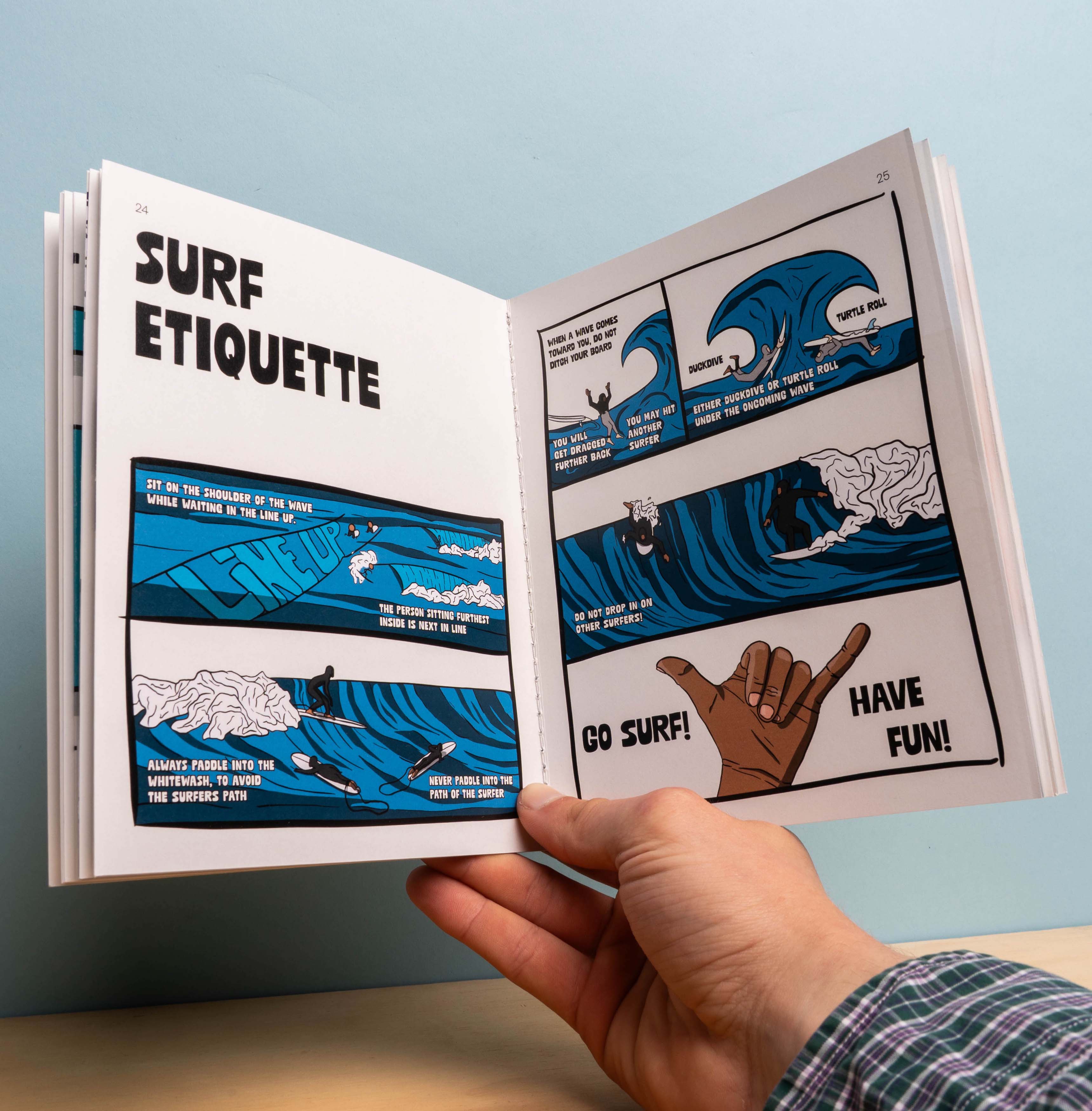 Your Line is a tool designed to guide beginner surfers through their progression journey. Created by an experienced surfer and tested with others in the same field, it provides trustworthy insight and real-world knowledge gained from time in the water. With a bright, rich illustration style, the book is both educational and enjoyable, helping new surfers build confidence, understand their equipment, and feel inspired to get out there and give it a go.