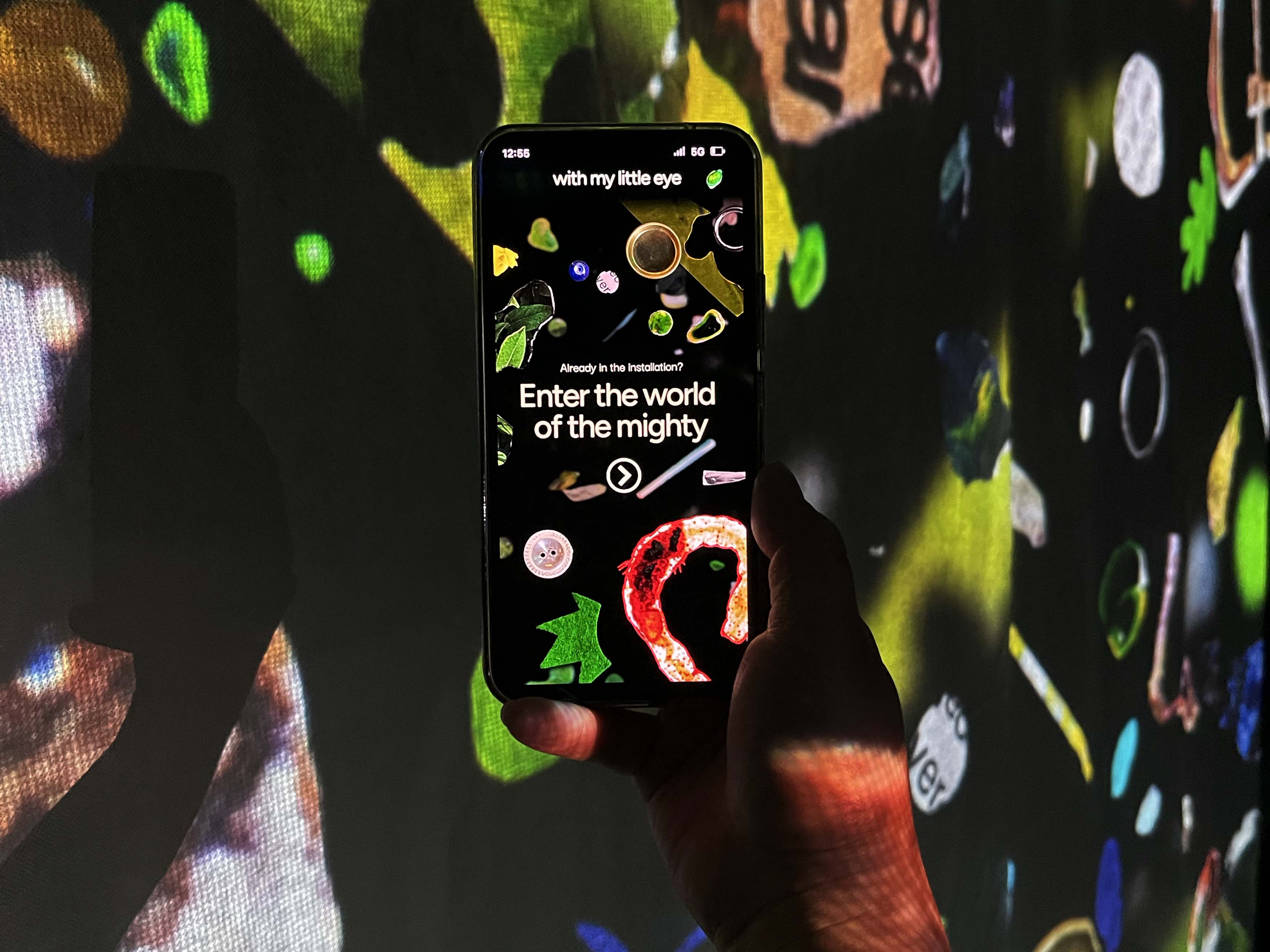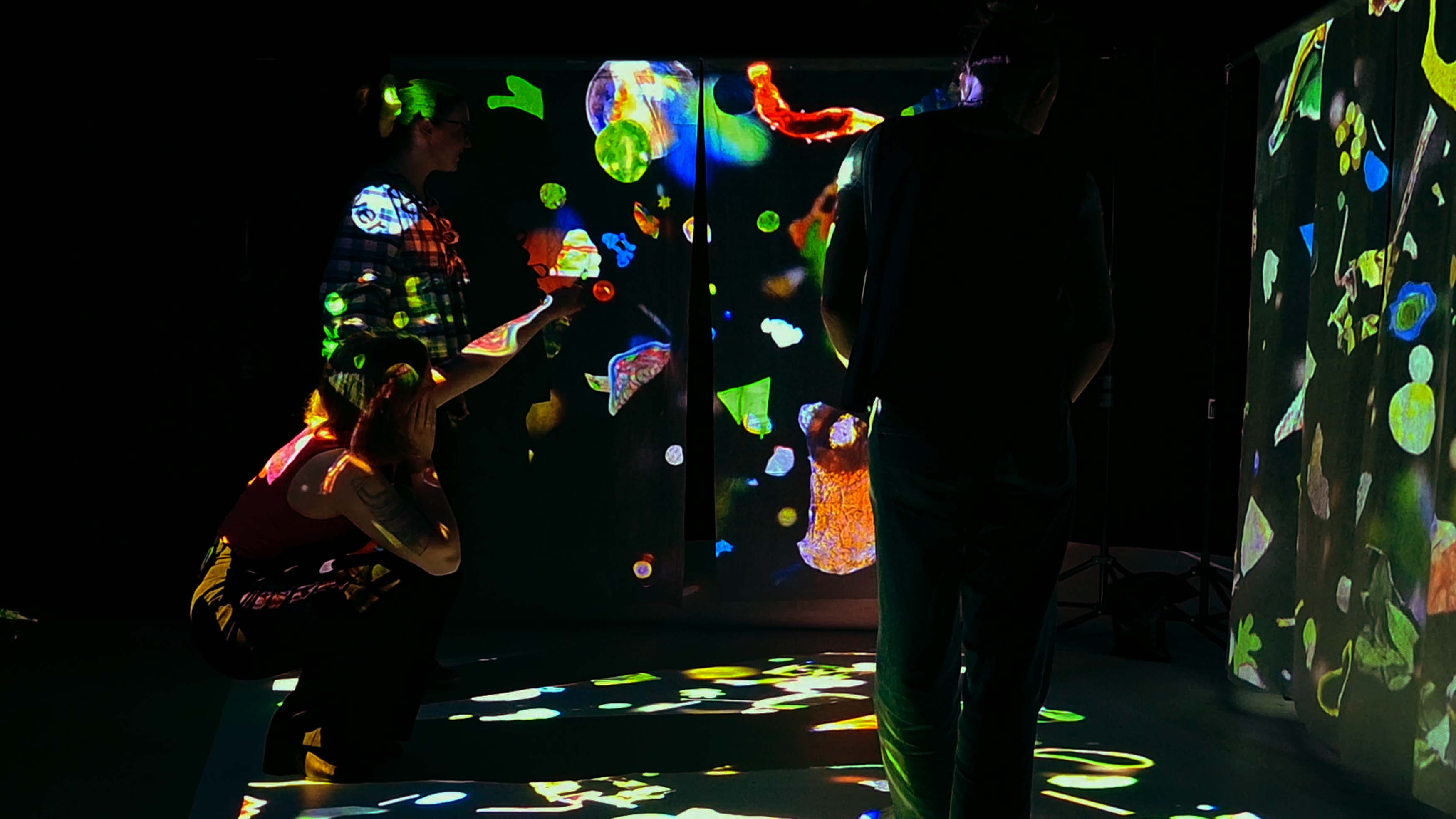 With My Little Eye, interacting with frost cloth in installation.