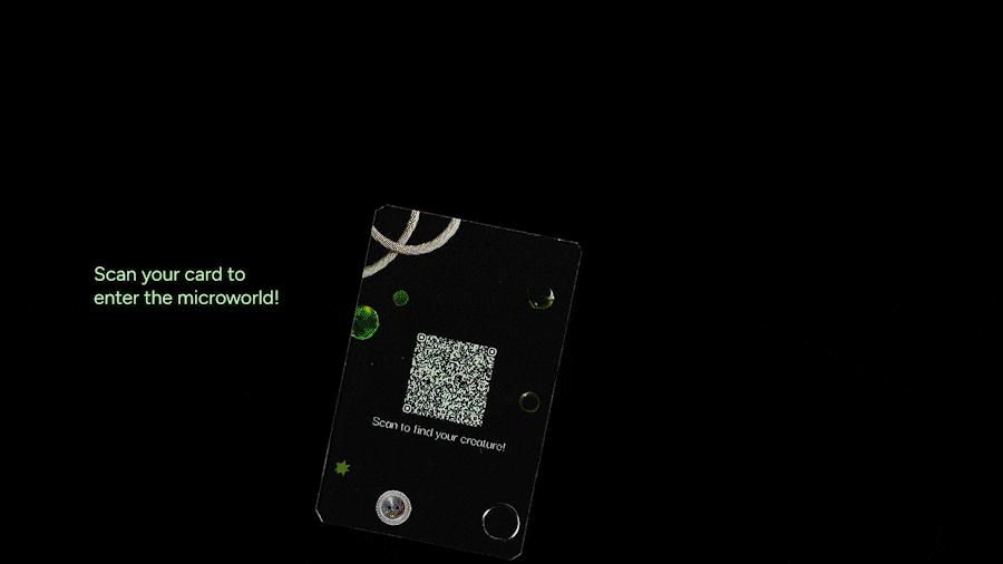 With My Little Eye is an installation that invites young explorers to peek into the fascinating world of aquatic microfauna. Using the interactive website on their devices, kids scan the creatures scattered across the frost cloth to uncover facts, game stats, and special power moves. Through the process of matching the creature on their card, they dive into a big game of I Spy— revealing the wonders of our diverse ecology, and inspiring a closer look at the natural world around us.