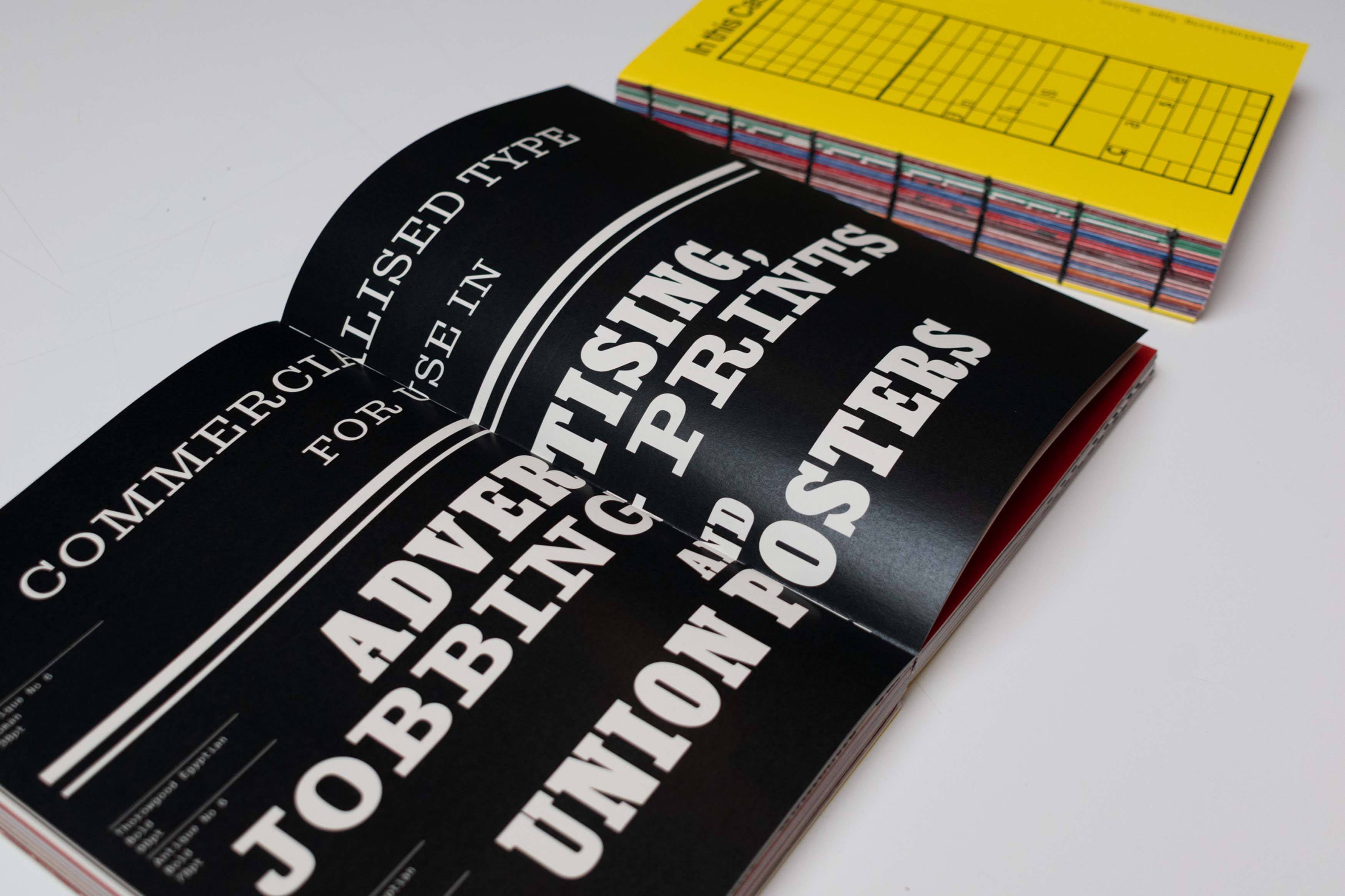 Spread displaying Slab Serif typefaces inspired by the industrial revolution.
