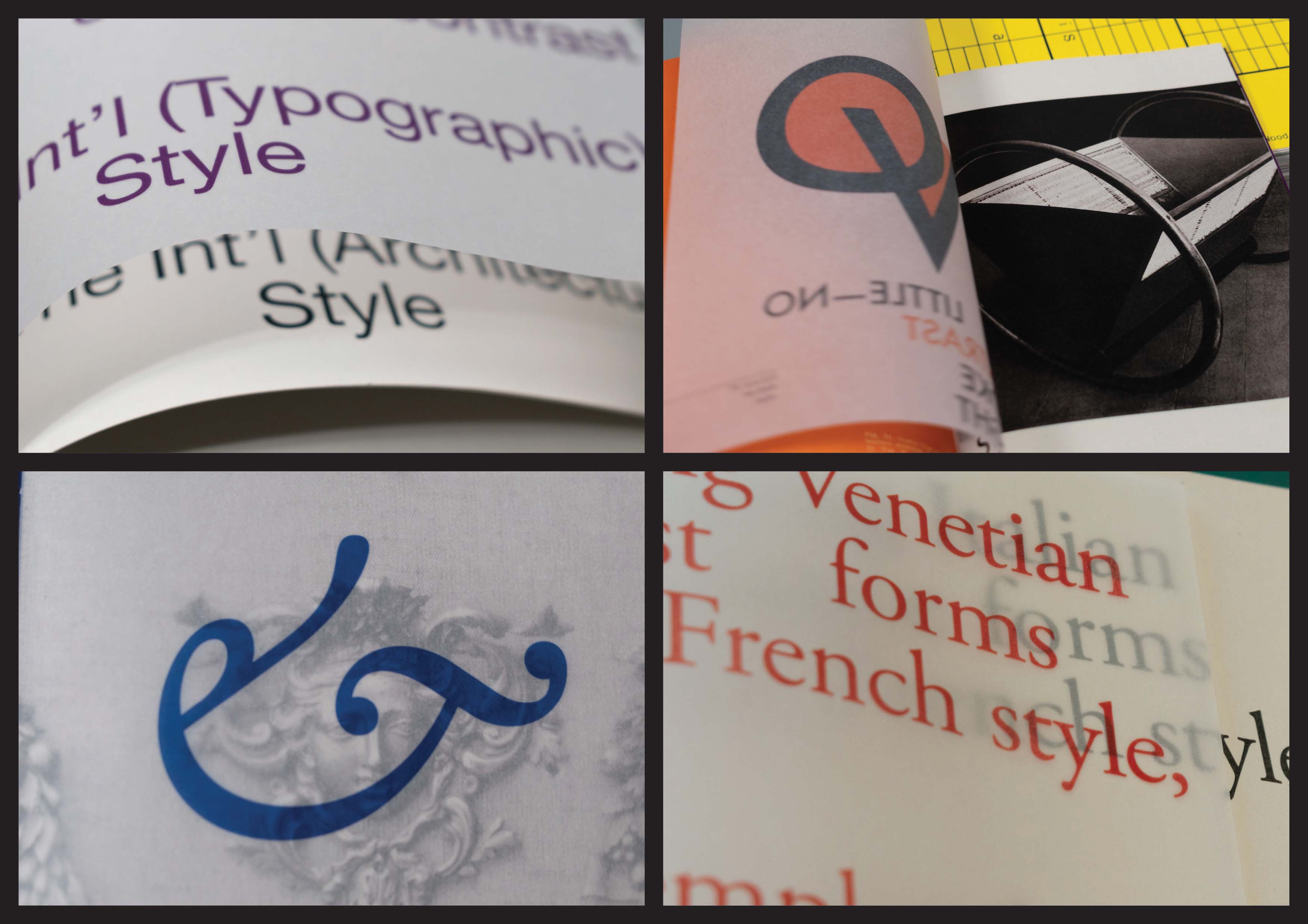 Examples of tracing paper being used to highlight parallels between type and architecture styles.