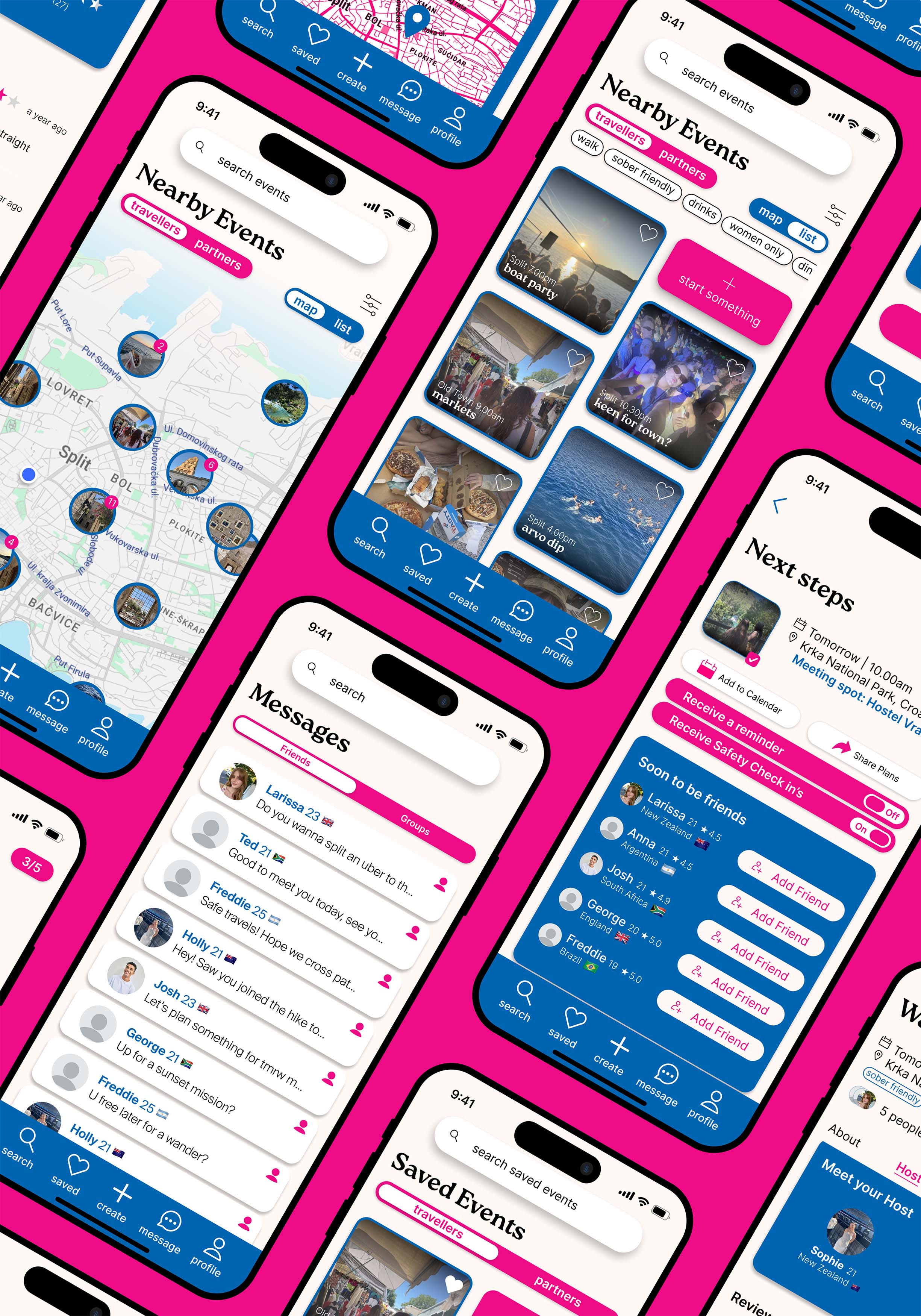 Roam connects solo travellers through shared events and experiences, making it easier to meet people while maintaining independence. The app helps users discover nearby activities hosted by fellow travellers, while events organized by local businesses offer a safer way to connect. By blending social opportunities with flexible, independent travel, roam aims to make meaningful connections easier for solo travellers.