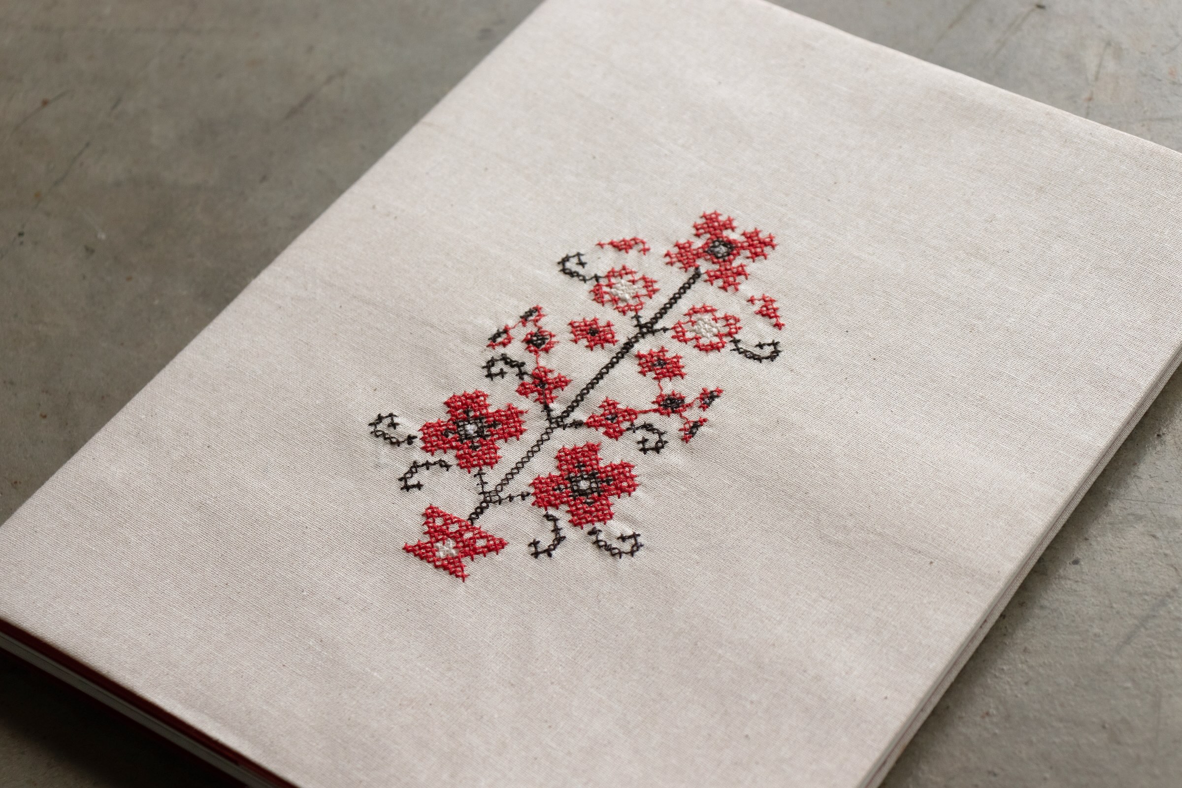 The embroidered book cover.