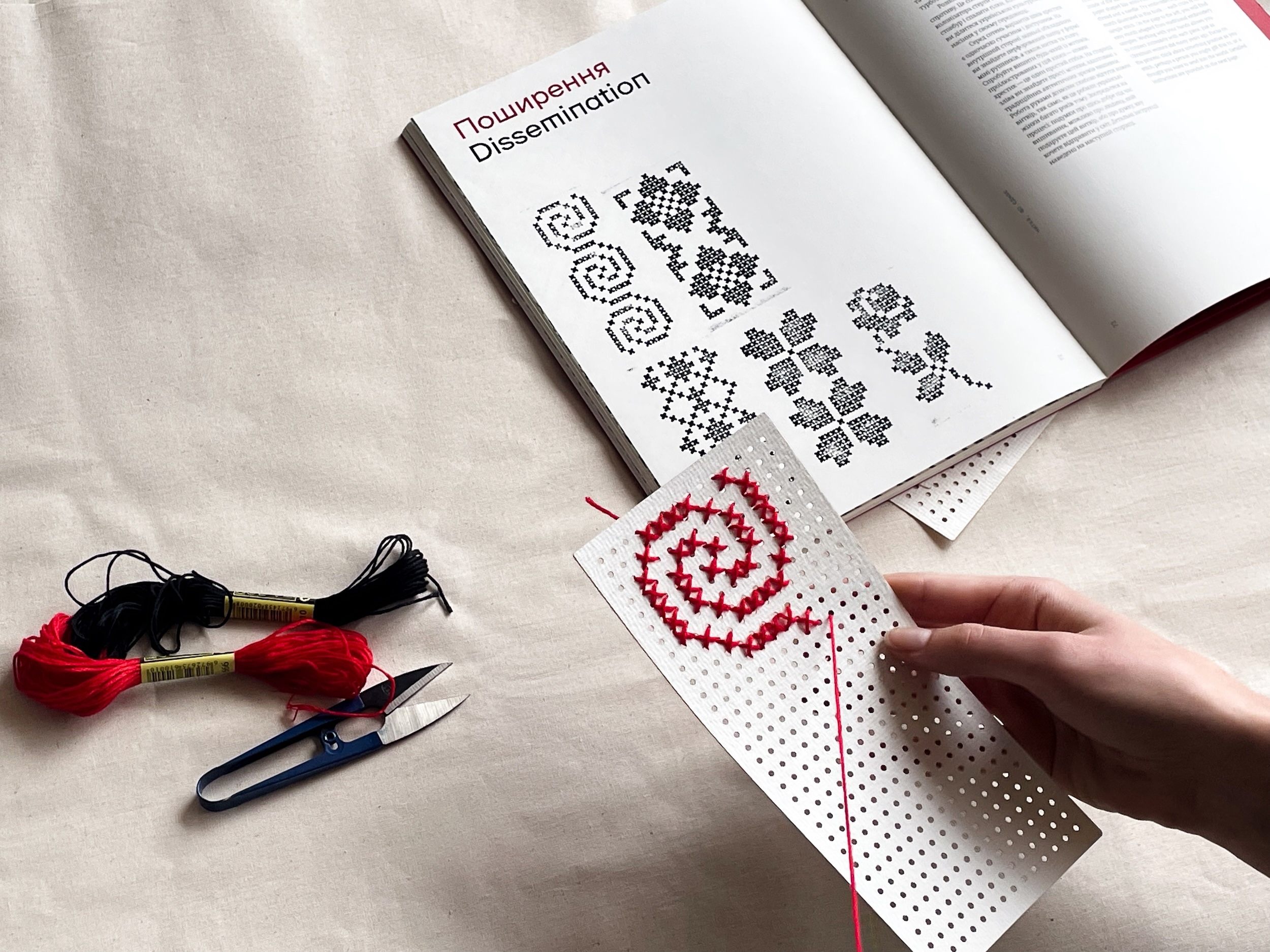 The final chapter invites cultural understanding through time and attention by having readers embroider one of the provided perforated cards.